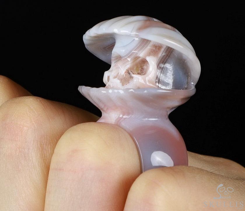 Gemstone 1.7" Mozambique Agate Hand Carved Fairy Elf Alien Crystal Skull Companion Sculpture, Crystal Healing