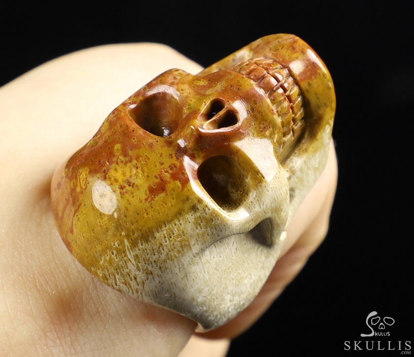 Ring Inside Diameter9(19 mm) Coral Fossil Carved Crystal Skull Ring, Crystal Healing