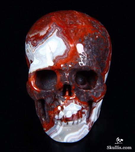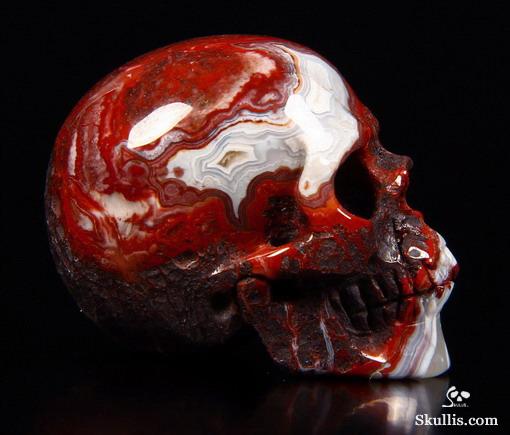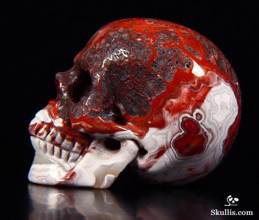 STUNNING 1.5" Red Crazy Lace Agate Carved Crystal Skull, Realistic