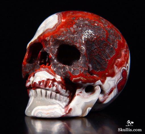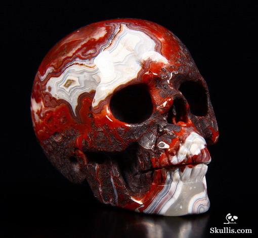 Gemstone 4.8" Red Crazy Lace Agate Hand Carved Crystal Skull, Realistic, Crystal Healing