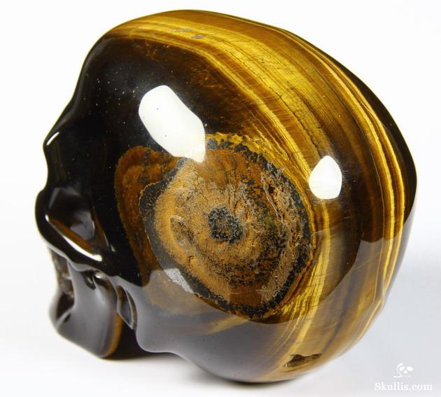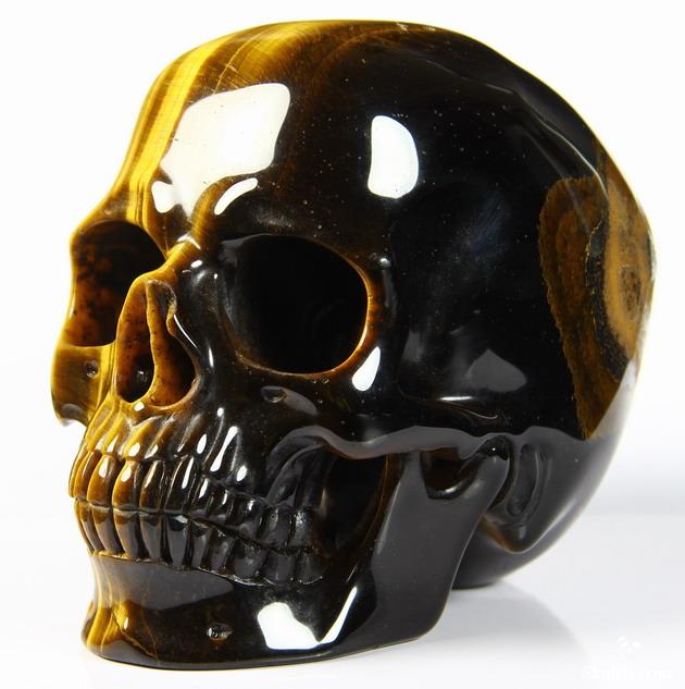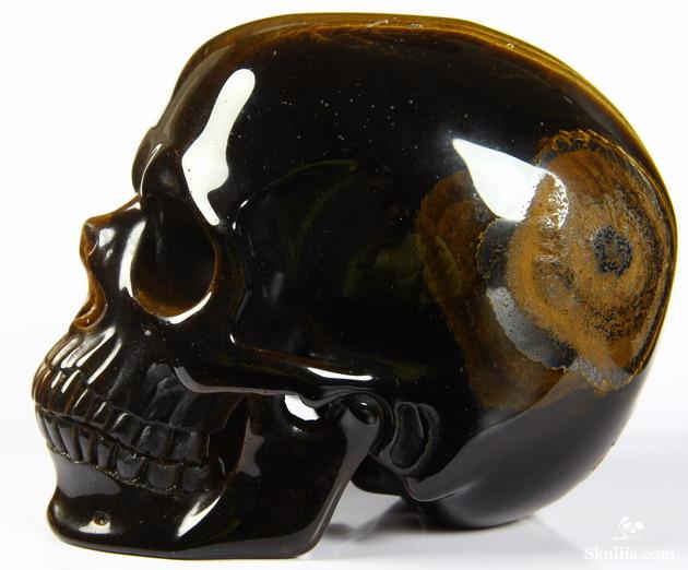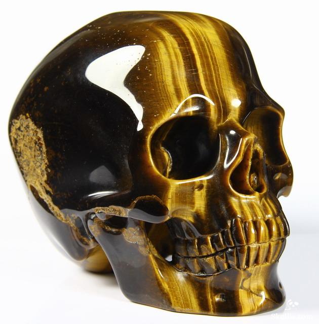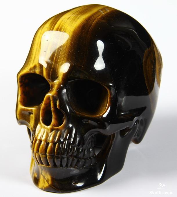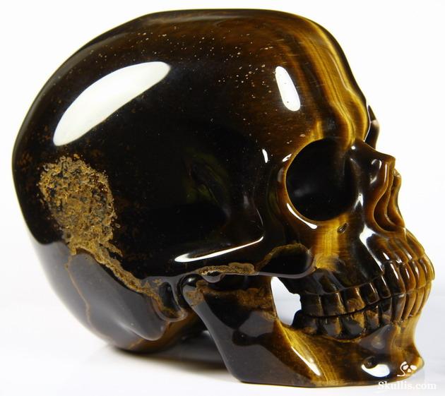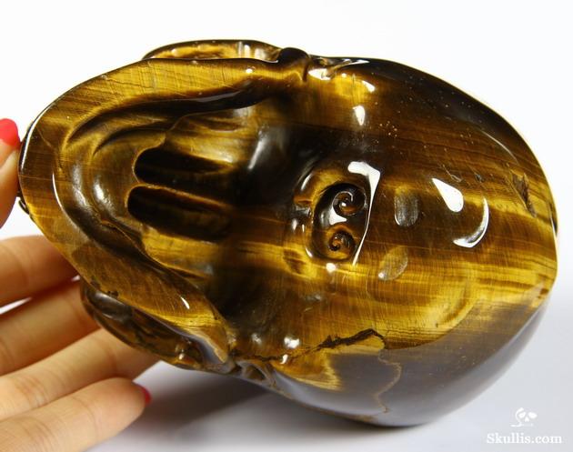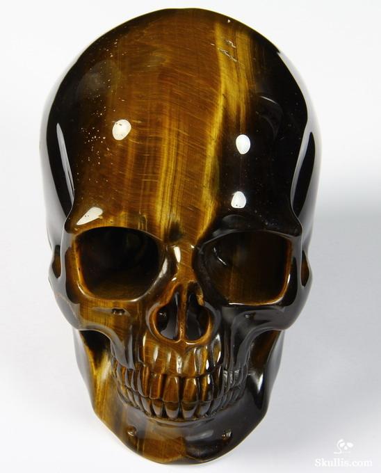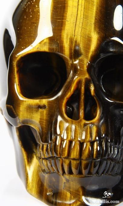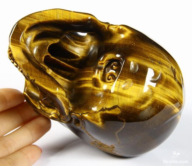 Amazing Flash Gemstone 5.2" Gold Tiger Eye Carved Crystal Skull, Super Realistic