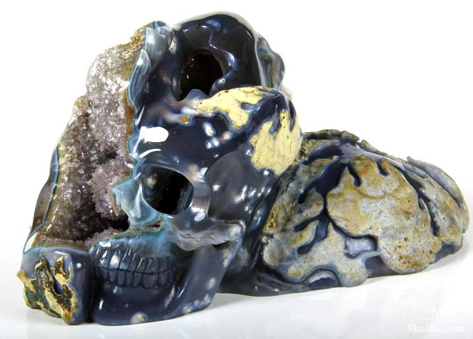 Lifesized 7.5" Agate Amethyst Geode Hand Carved Crystal Skull, Super Realistic, Crystal Healing