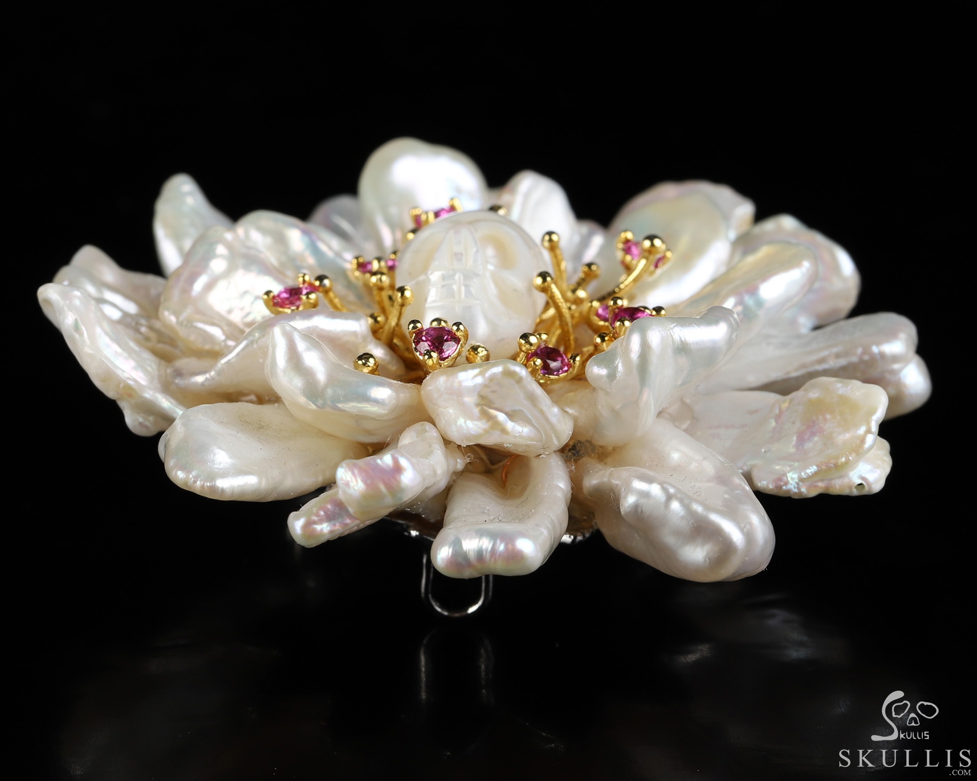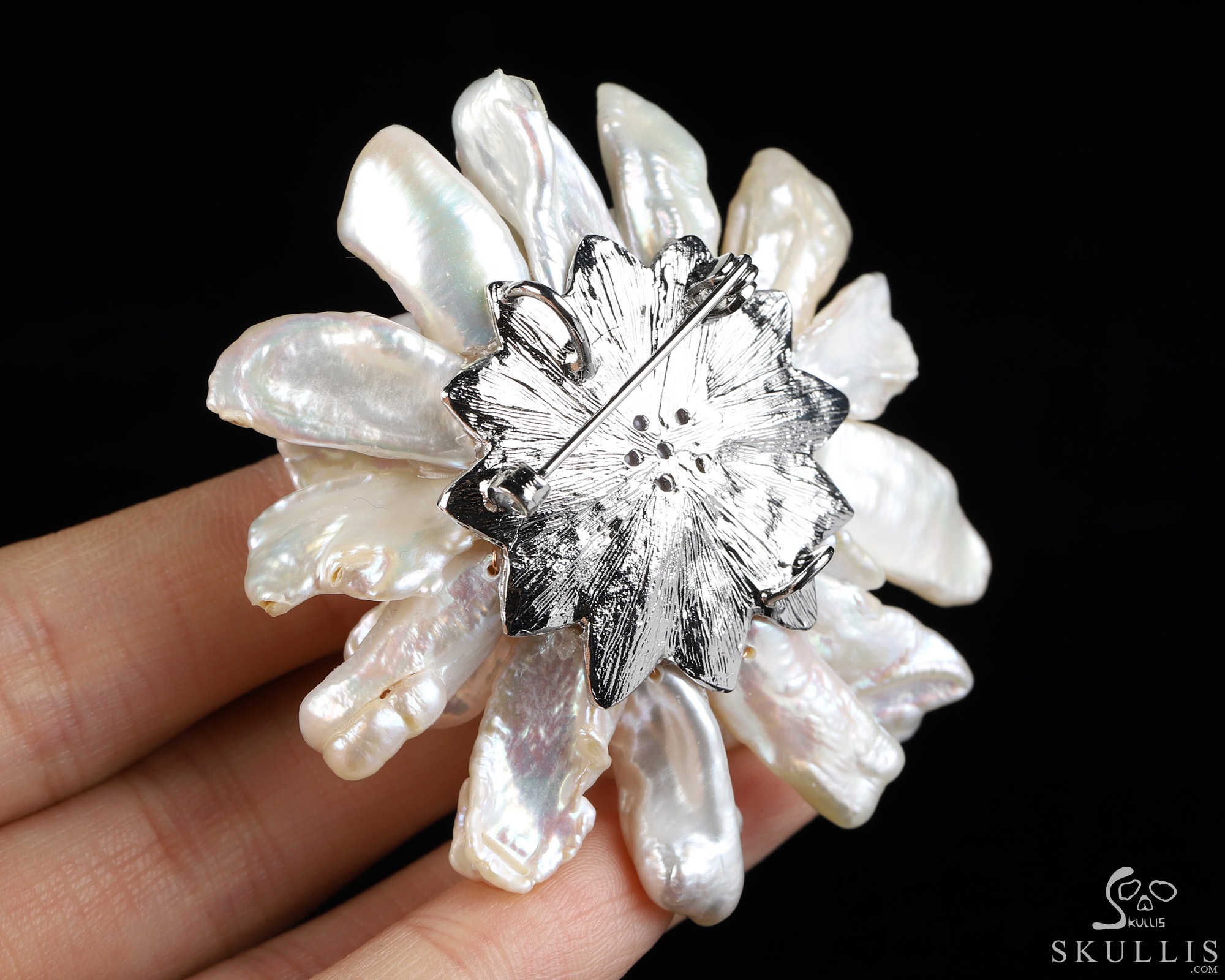 Shell Hand Carved Skull Brooch, Skull Jewelry
