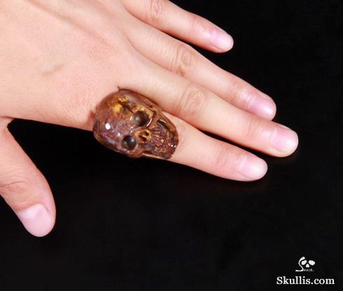 Fancy Gemstones with Skulls Ring Citrine Carved Crystal Skull, Crystal Skull Jewelry