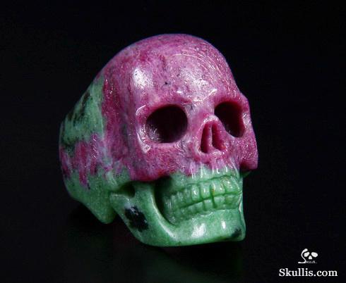 Gemstone 2.9" Ruby Zoisite Carved Crystal Skull,Super Realistic, Crystal Healing