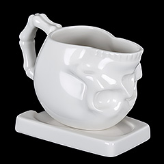 - Love this cup! I bought this for myself as an early birthday gift. I have a collection of mugs and love skulls. It’s a conversation piece and the plate is a coaster, plate, stand and good for steeping tea/covering your coffee. It’s excellent quality. Definitely a “treat yo’ self” item!