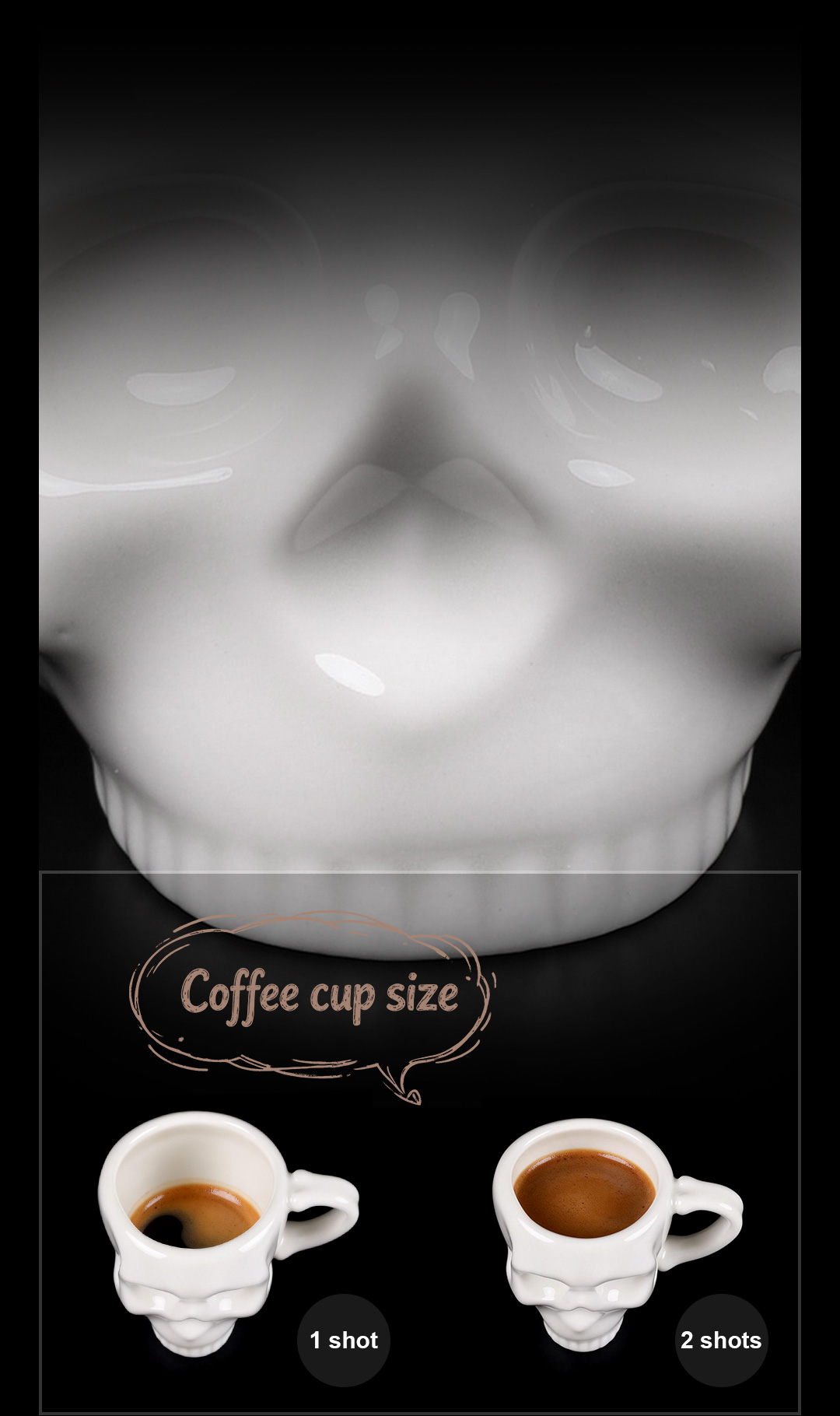 free! Get straight to it using our too cool tiny skull shaped espresso cup for