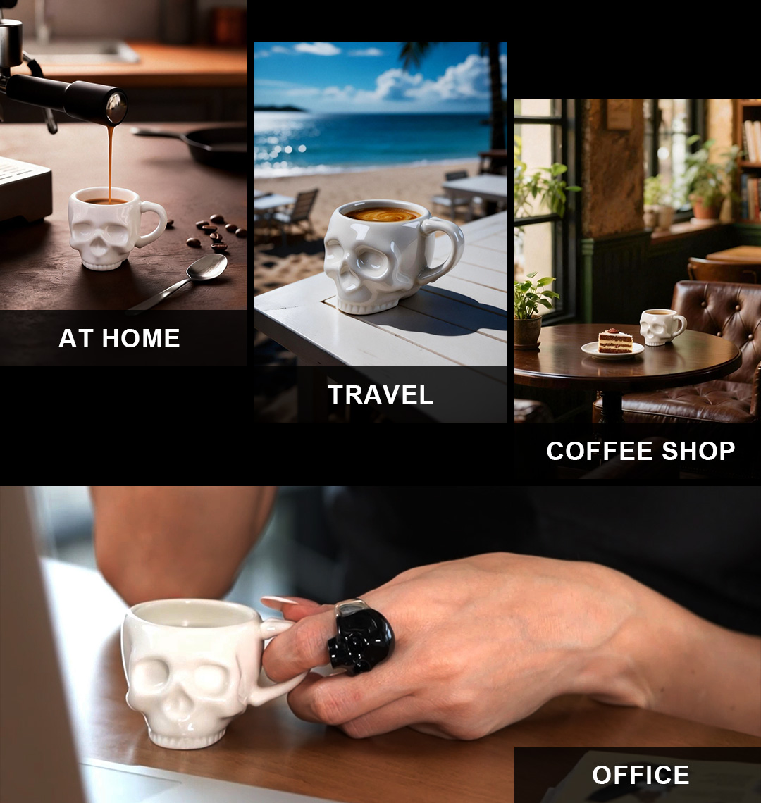 So we started thinking: What if we could create something with that same striking design, the same comfortable feel, something that still makes a statement when you use it—but more accessible? That’s how we landed on ceramic. It’s lightweight, durable, and much more affordable, so more people can enjoy a skull cup of their own.