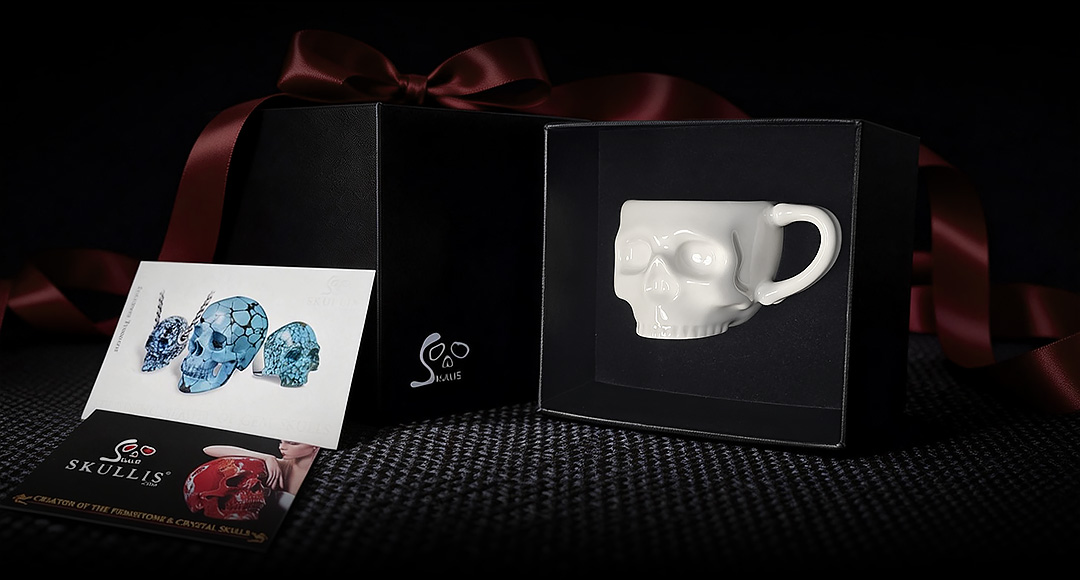 Attractive and versatile, our new skull-shaped porcelain mug takes inspiration from our popular hand-carved Crystal Skull Coffee Mugs, originally sculpted from solid semi-precious stone. This custom design emerged from a ollaboration with one of our wonderful customers several years ago.