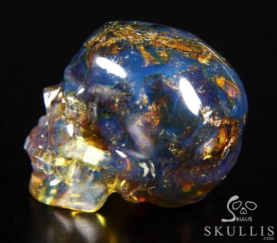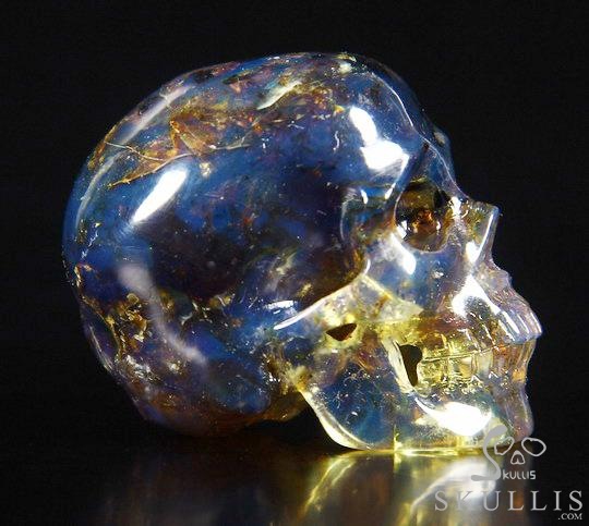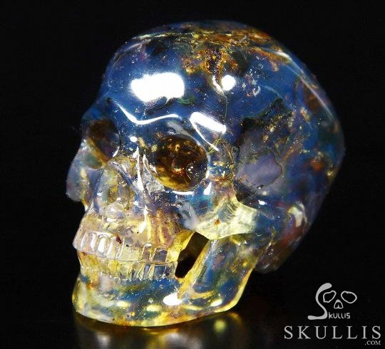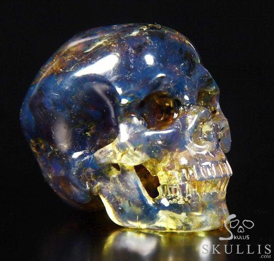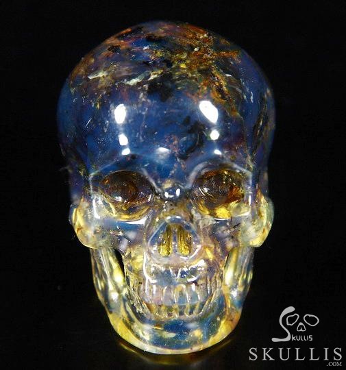 Stunning Gemstone 1.7" Dominican Blue Amber Carved Crystal Skull, Super Realistic