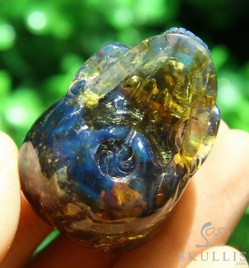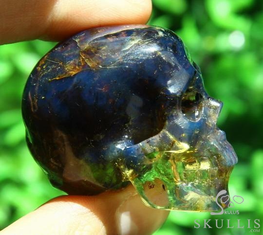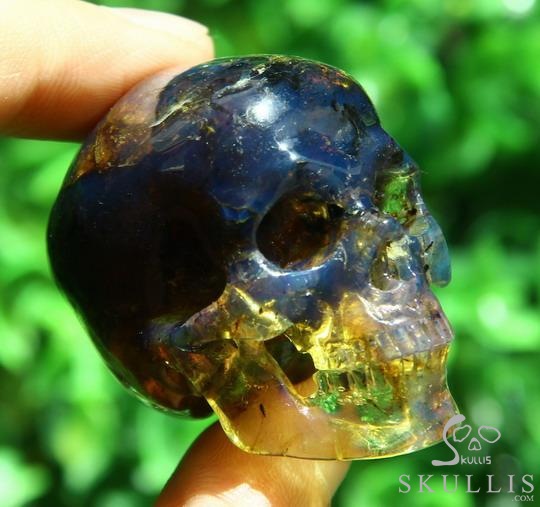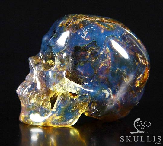 Gemstone 1.4" Dominican Blue Amber Carved Crystal Skull,Realistic, Crystal Healing