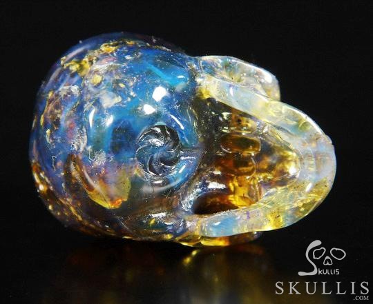 Gemstone Tiny 0.7" Dominican Blue Amber Carved Crystal Skull, Realistic