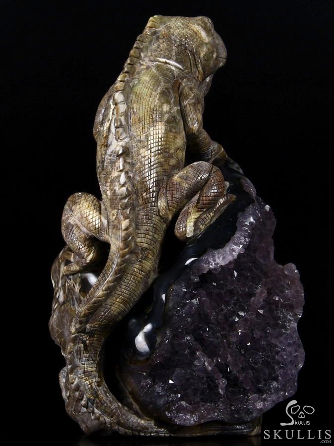 Stunning Unique Amethyst Geode Huge 7.3" Dinosaur Egg Agate Carved Carved Crystal Lizard Sculpture