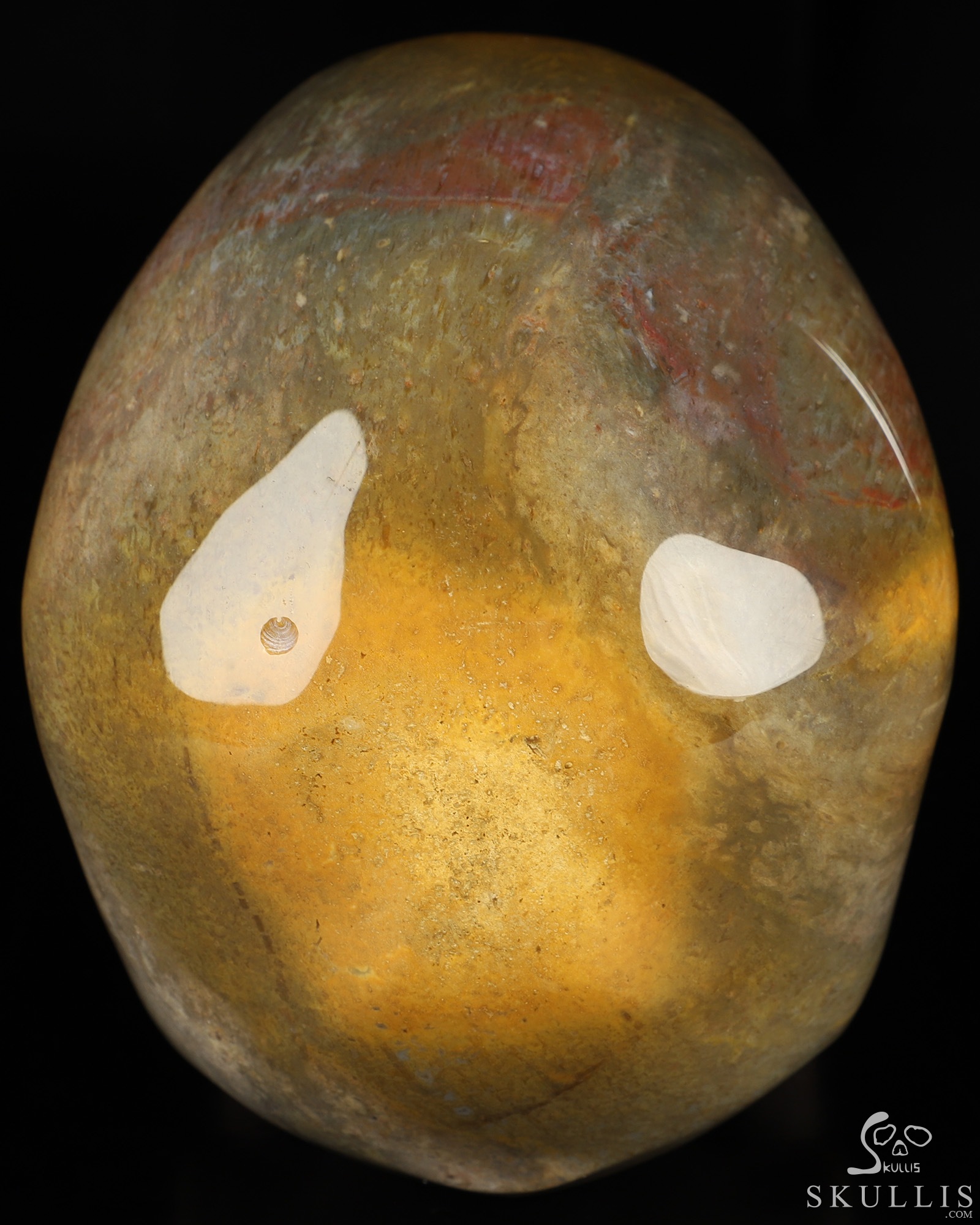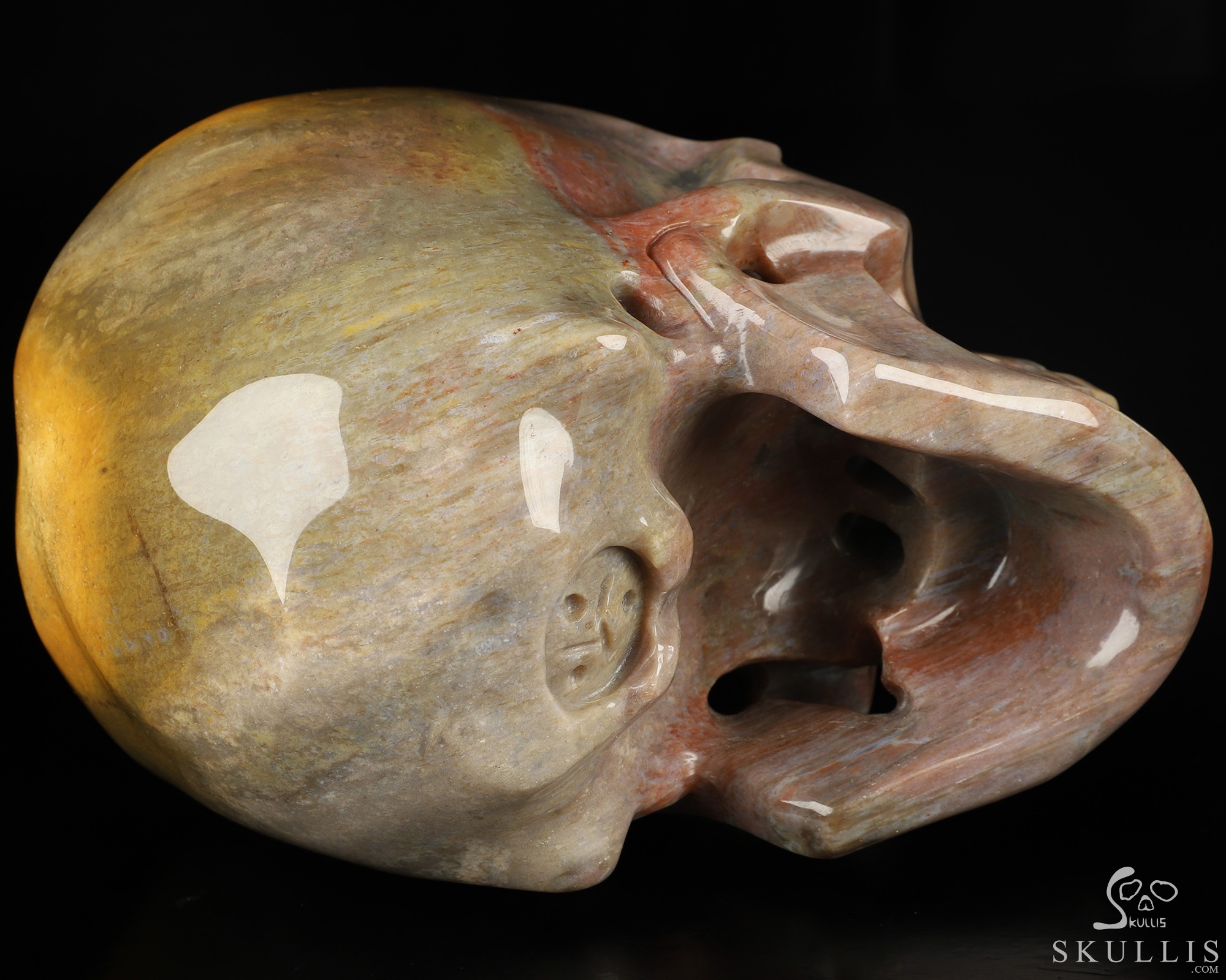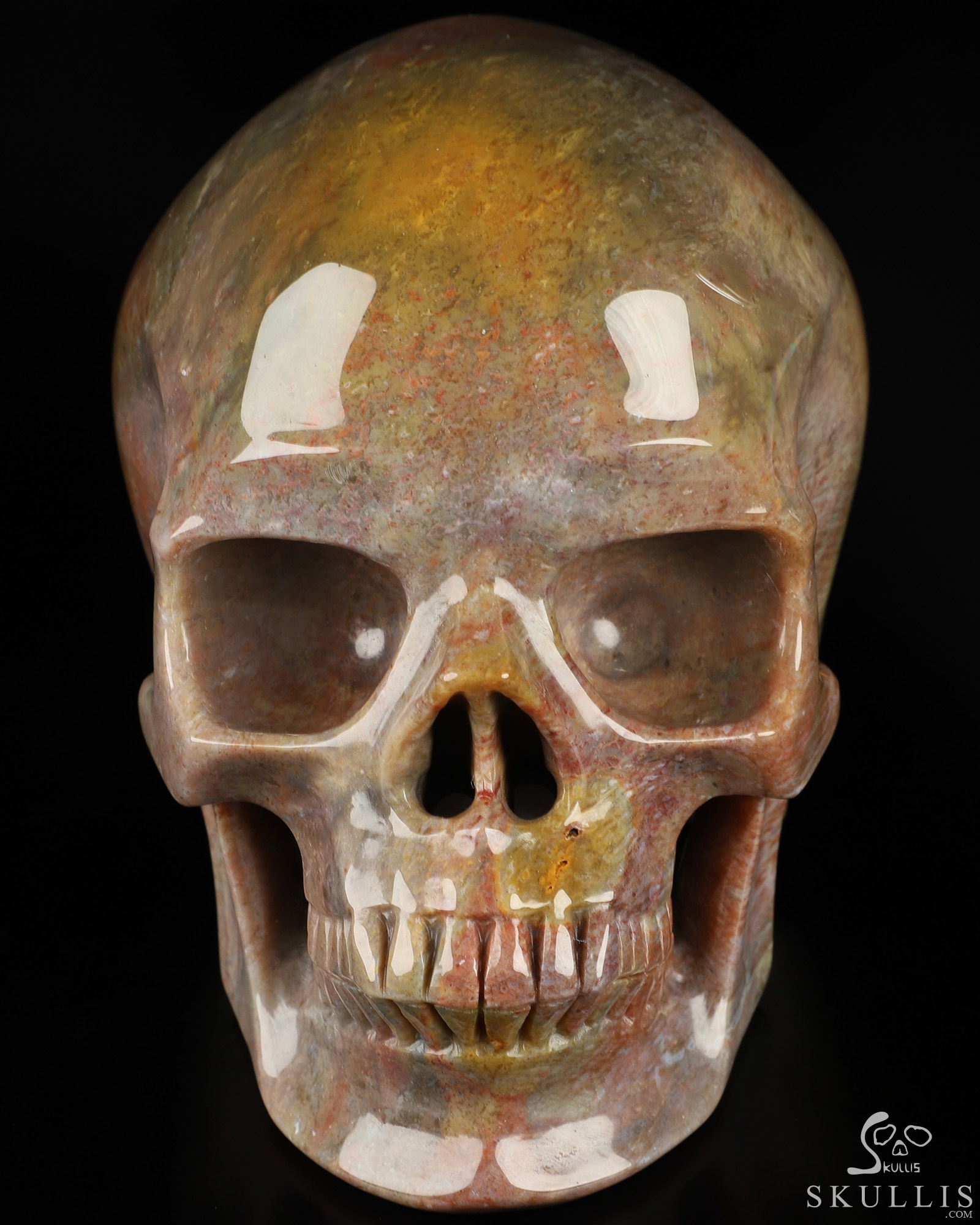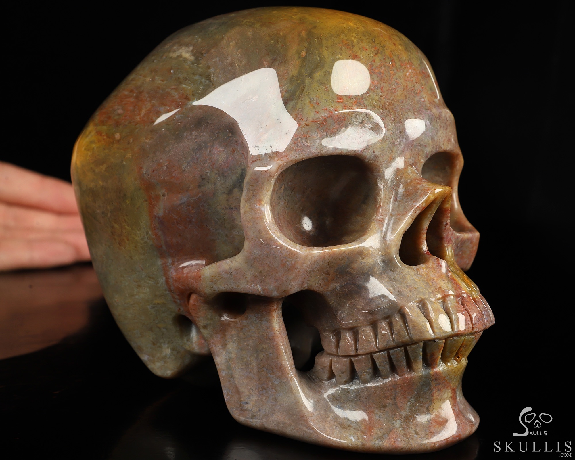 Huge 5.2" Petrified Wood Carved Crystal Singing Skull, Crystal Healing
