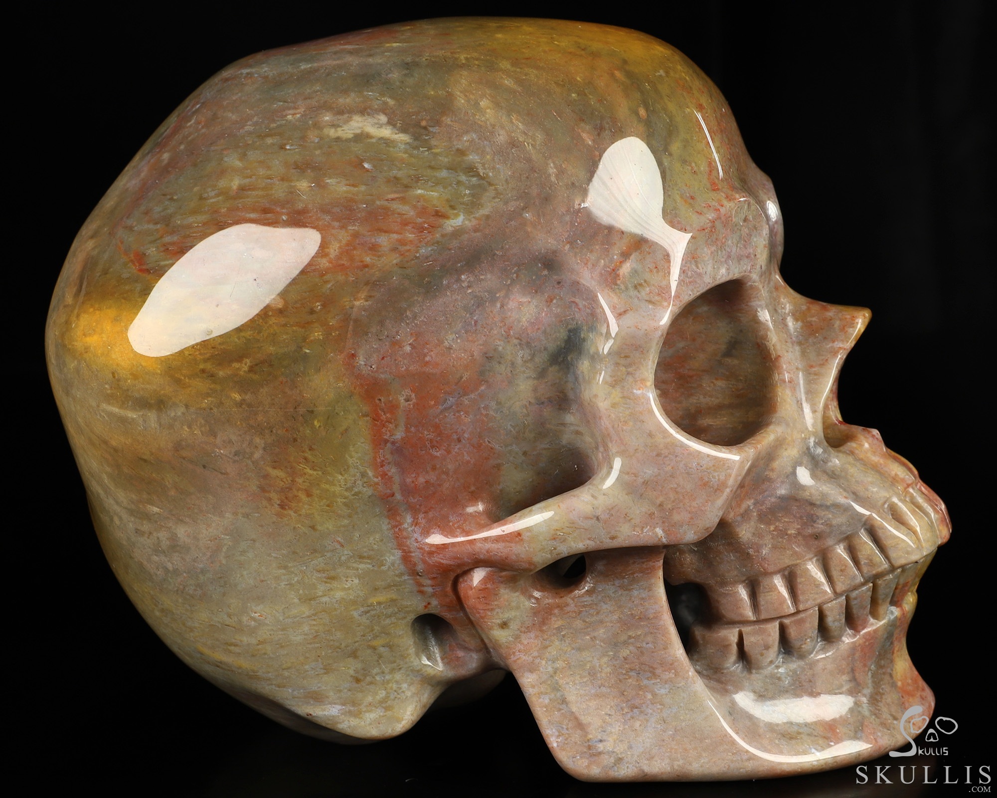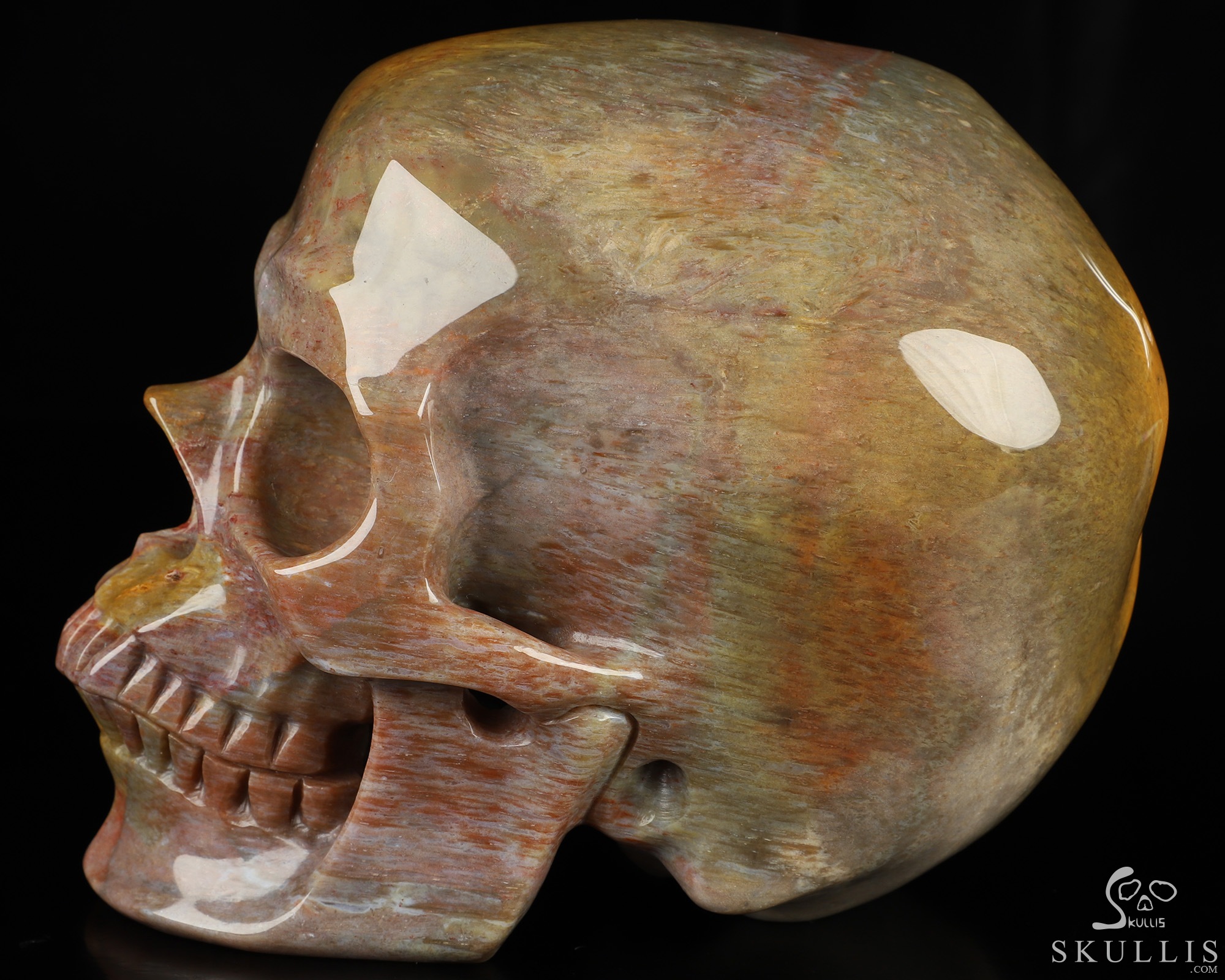 11.0" Petrified Wood Hand Carved Crystal Skull Fine Art Sculpture, Crystal Healing