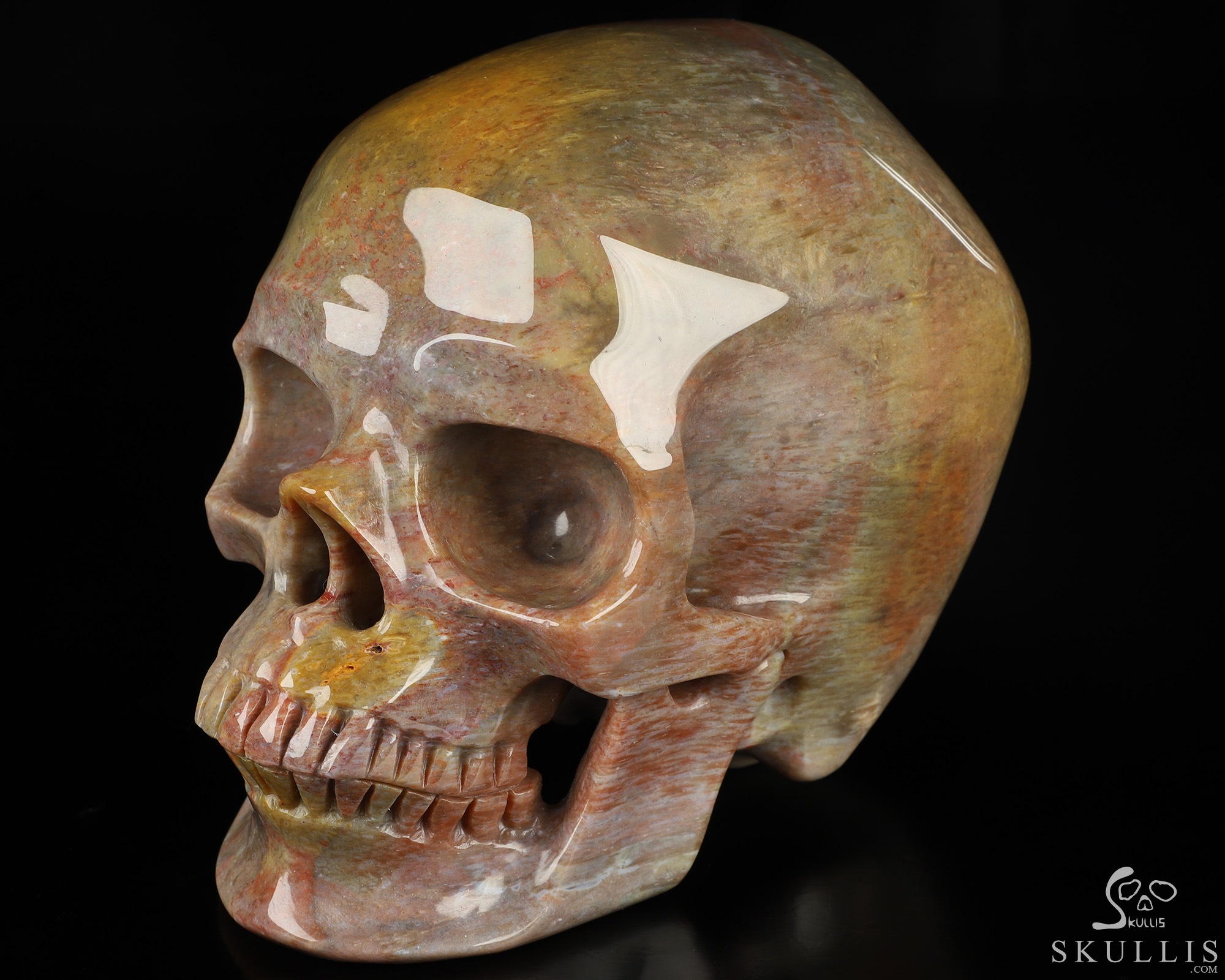 QUALITY 5.1" Petrified Wood Carved Crystal Skull,Super Realistic, Crystal Healing