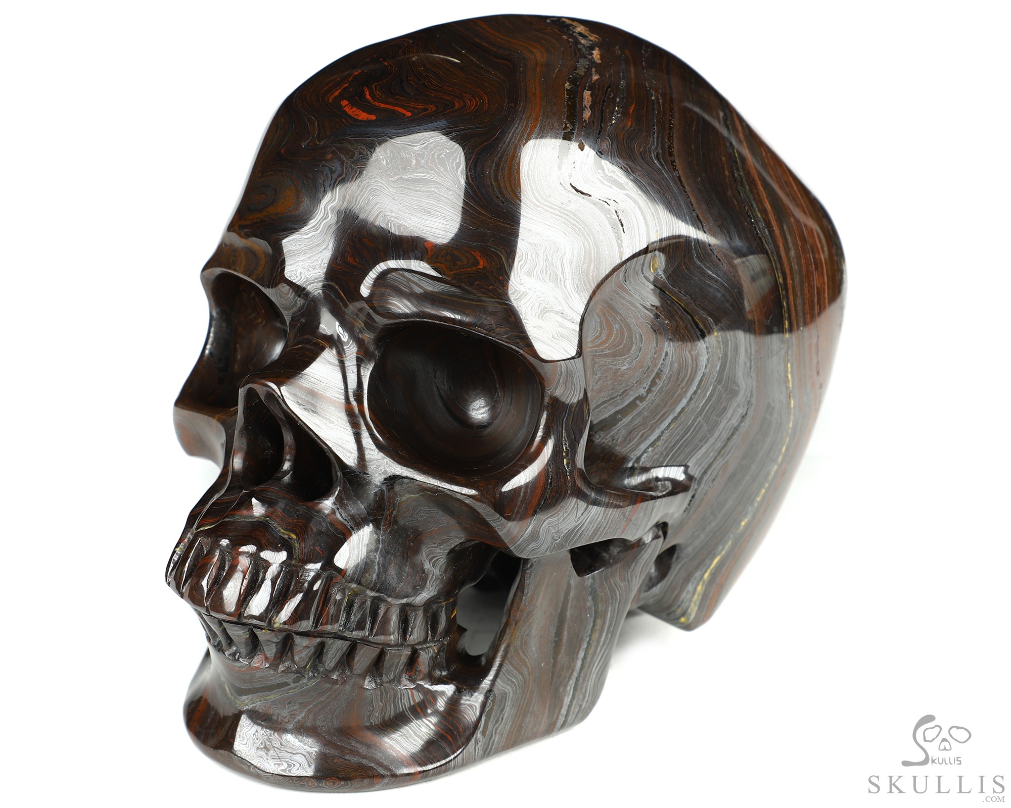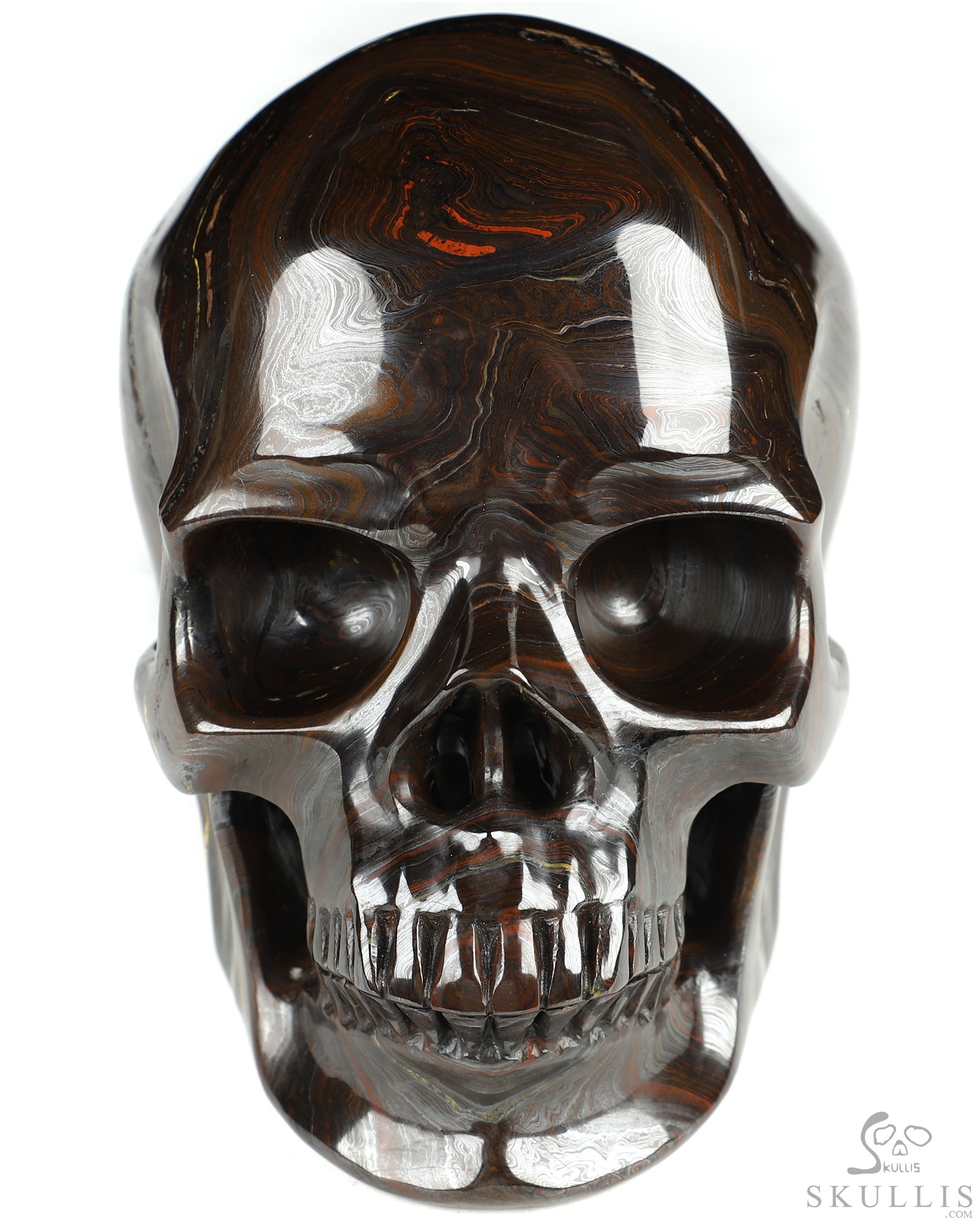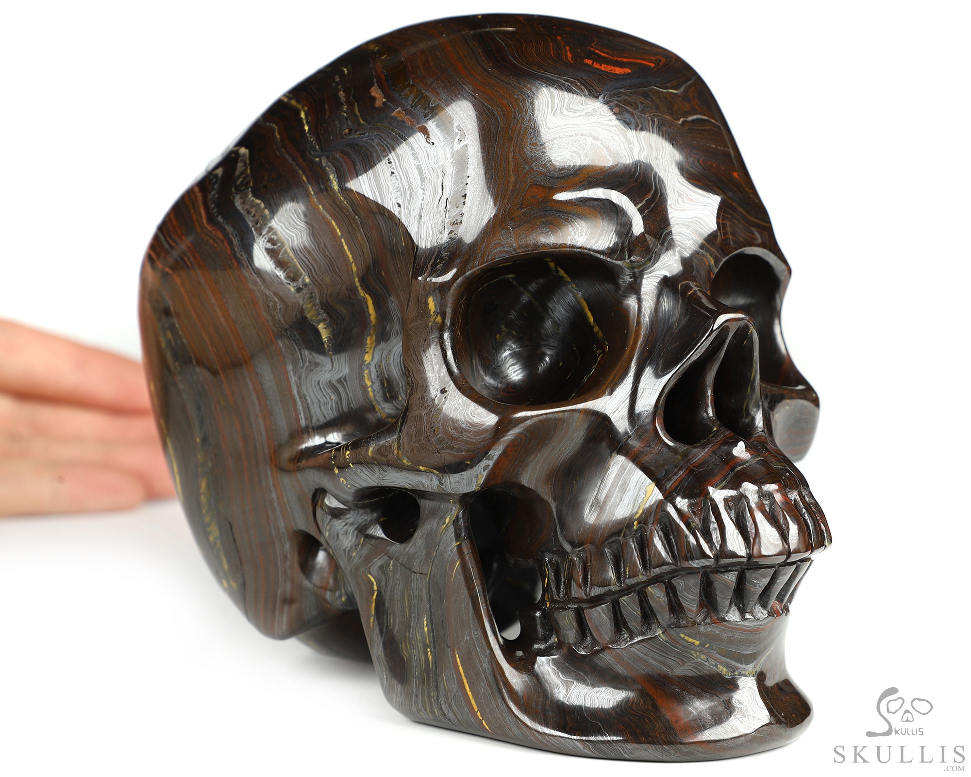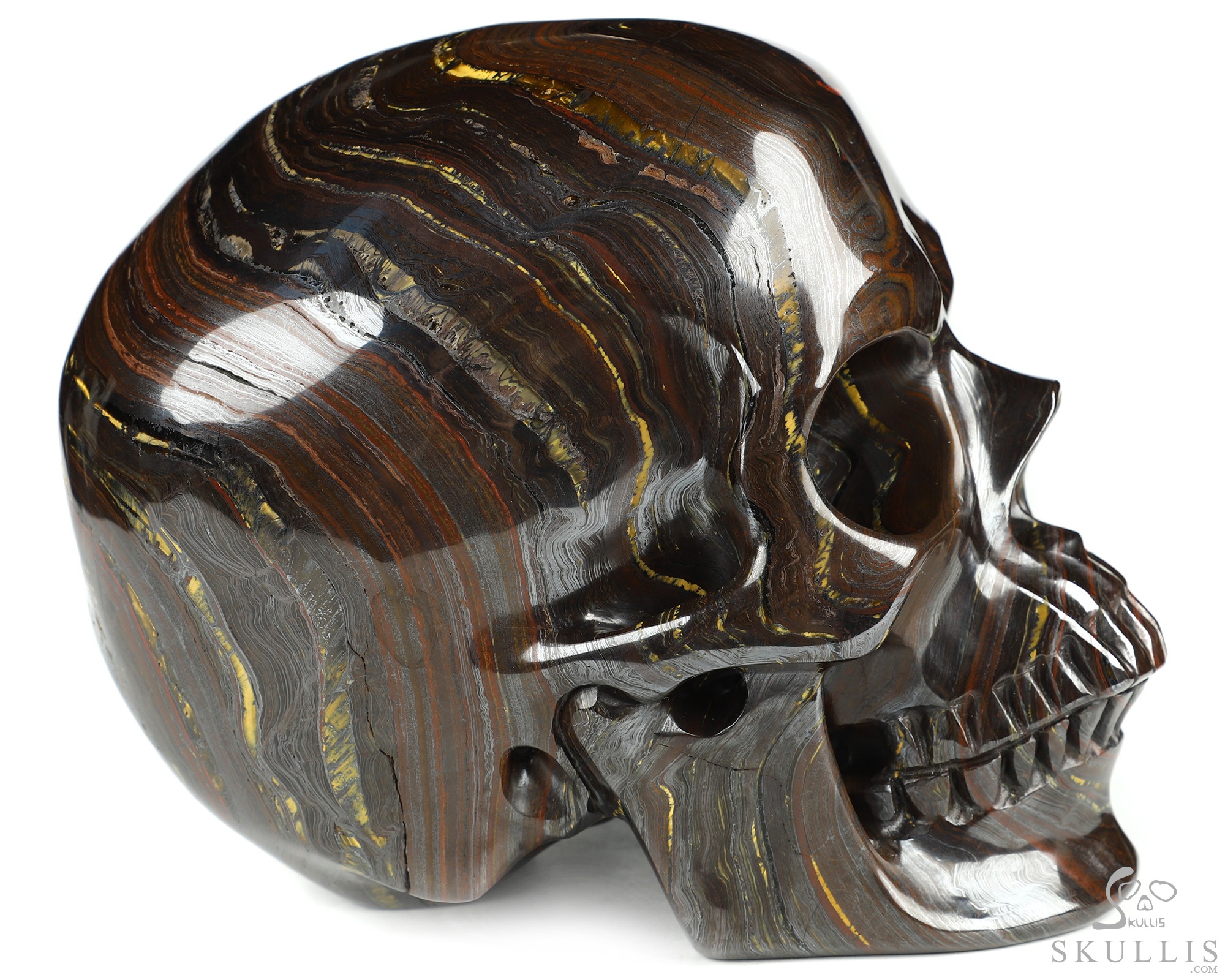 42.3LB Titan 10.8" Gold Tiger Iron Eye Carved Crystal Skull, Super Realistic, Crystal Healing