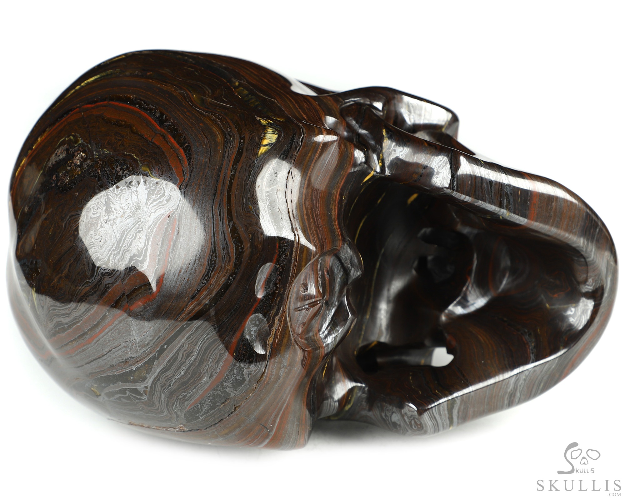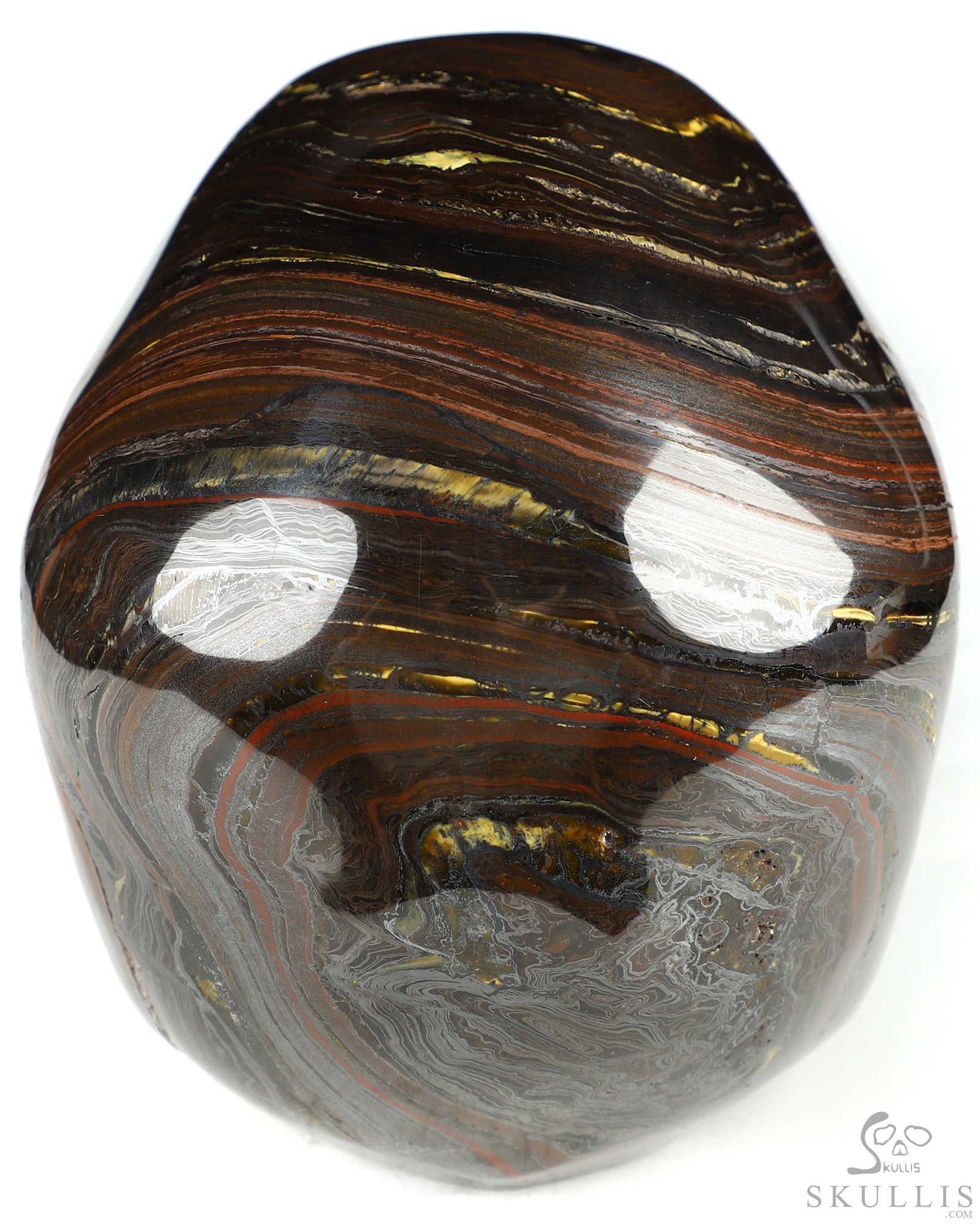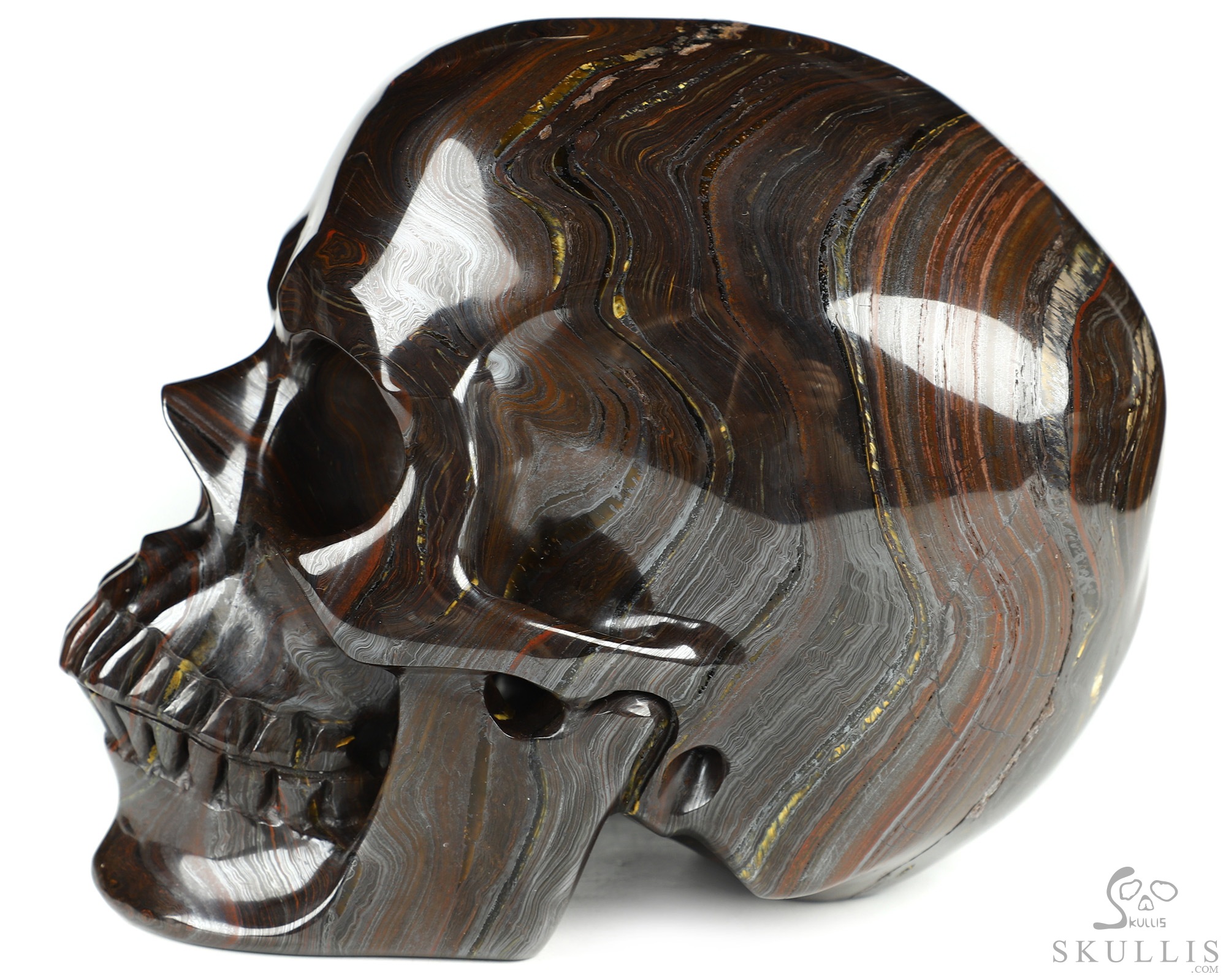Super Realistic! Lifesized 6.2" Gold Tiger Iron Eye Hand Carved Crystal Skull, Crystal Healing