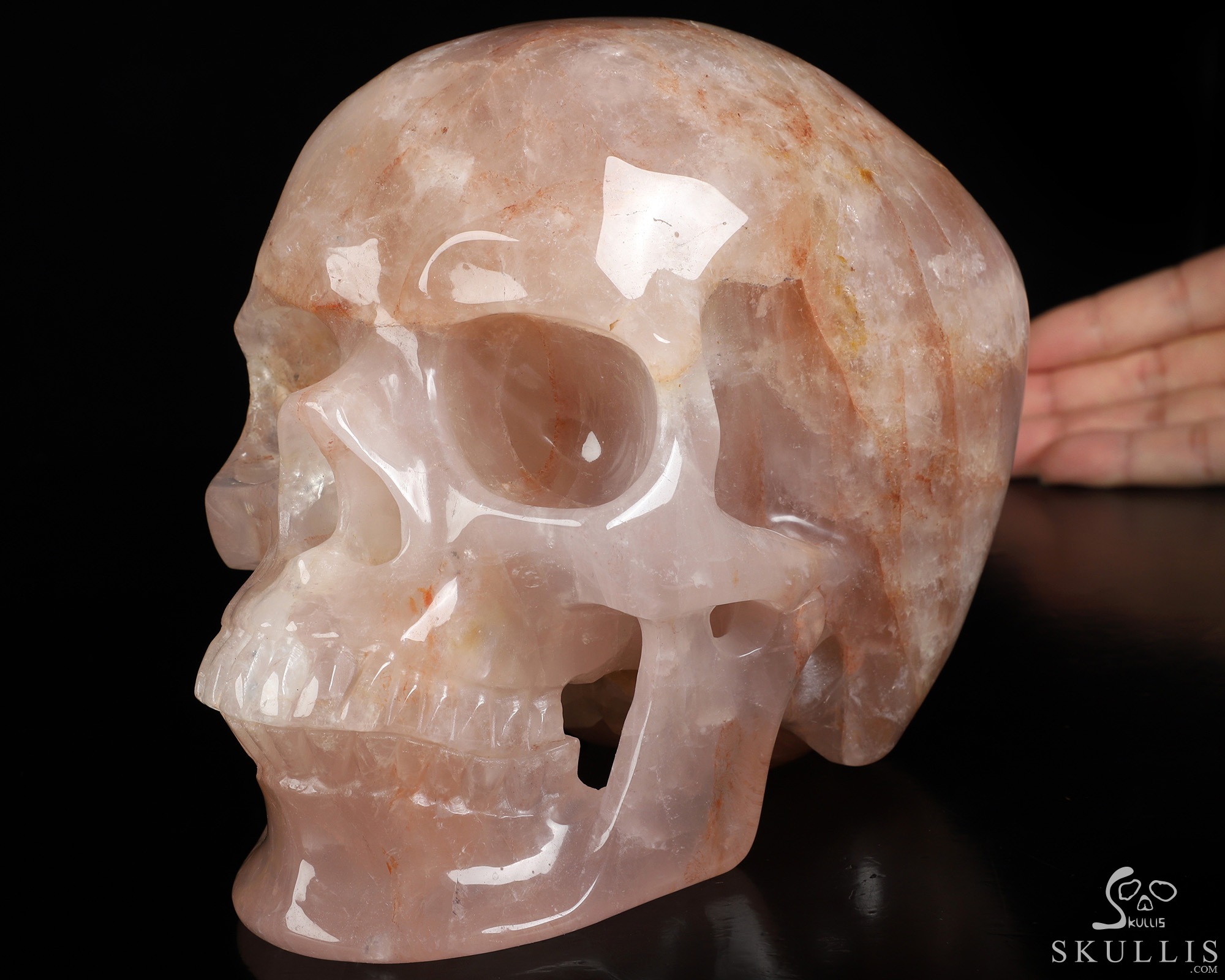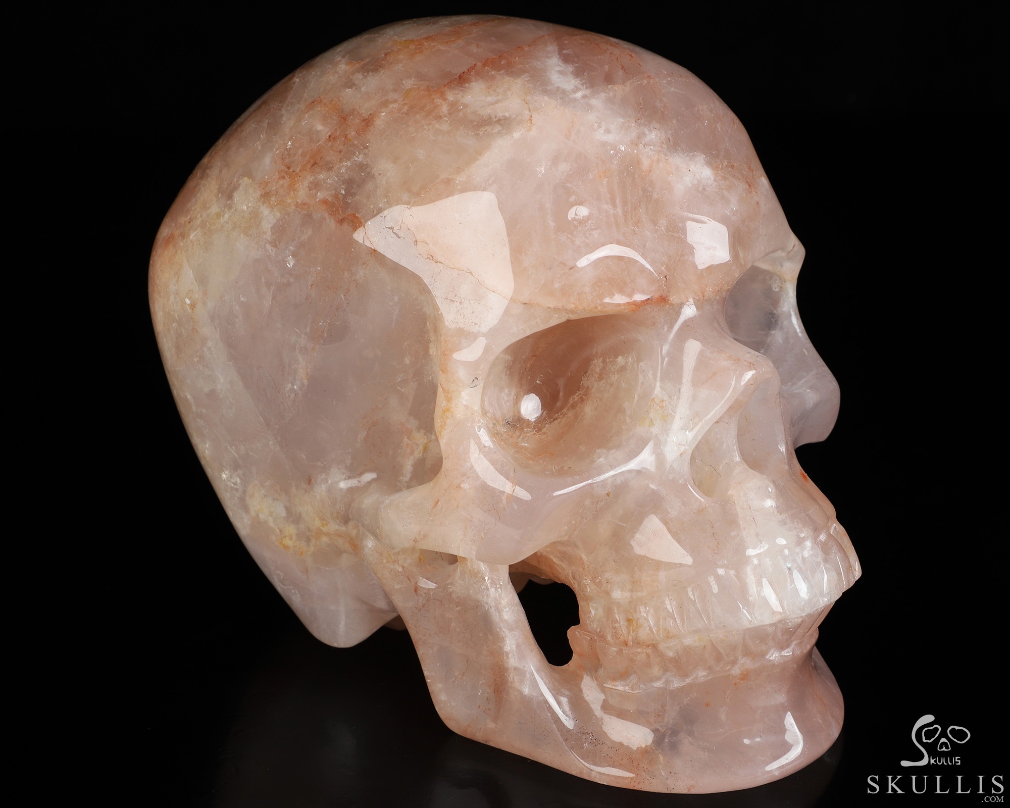 5.0" Fire Quartz Hand Carved Crystal Skull, Super Realistic, Crystal Healing
