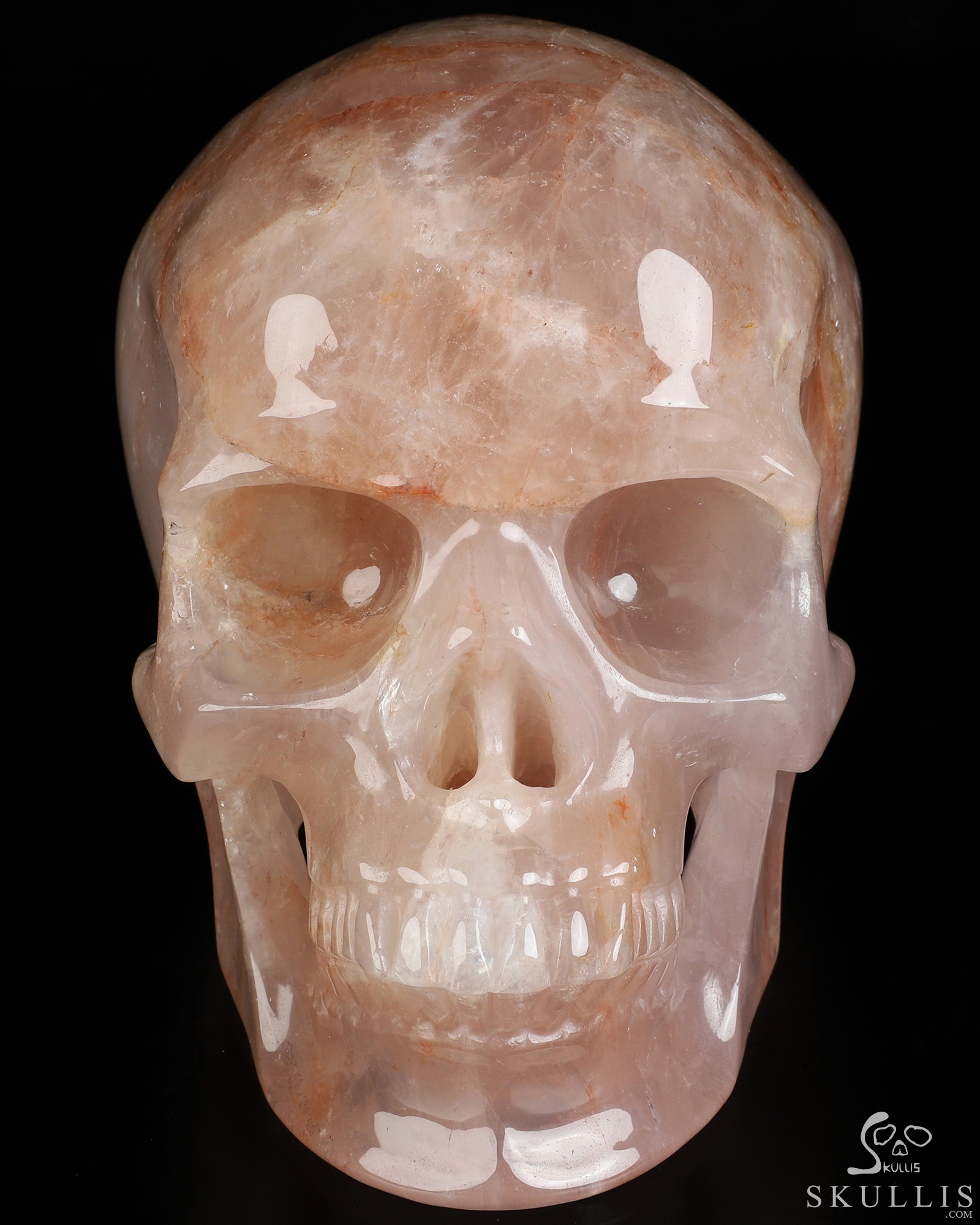 Super Realistic! Lifesized 6.9" Fire Quartz Hand Carved Crystal Skull, Crystal Healing