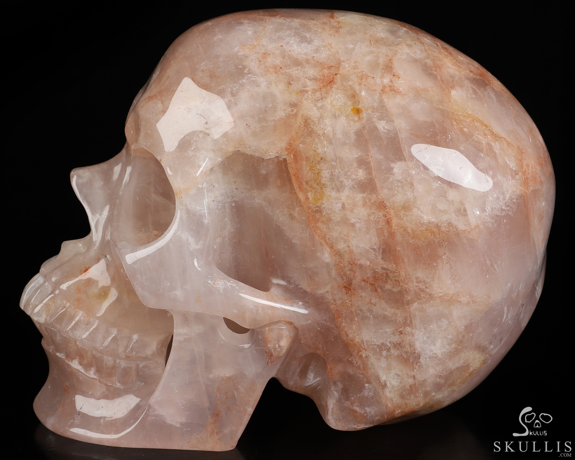 You are looking at a Fire Quartz skull. The skull is 6.9 inches from front to back.