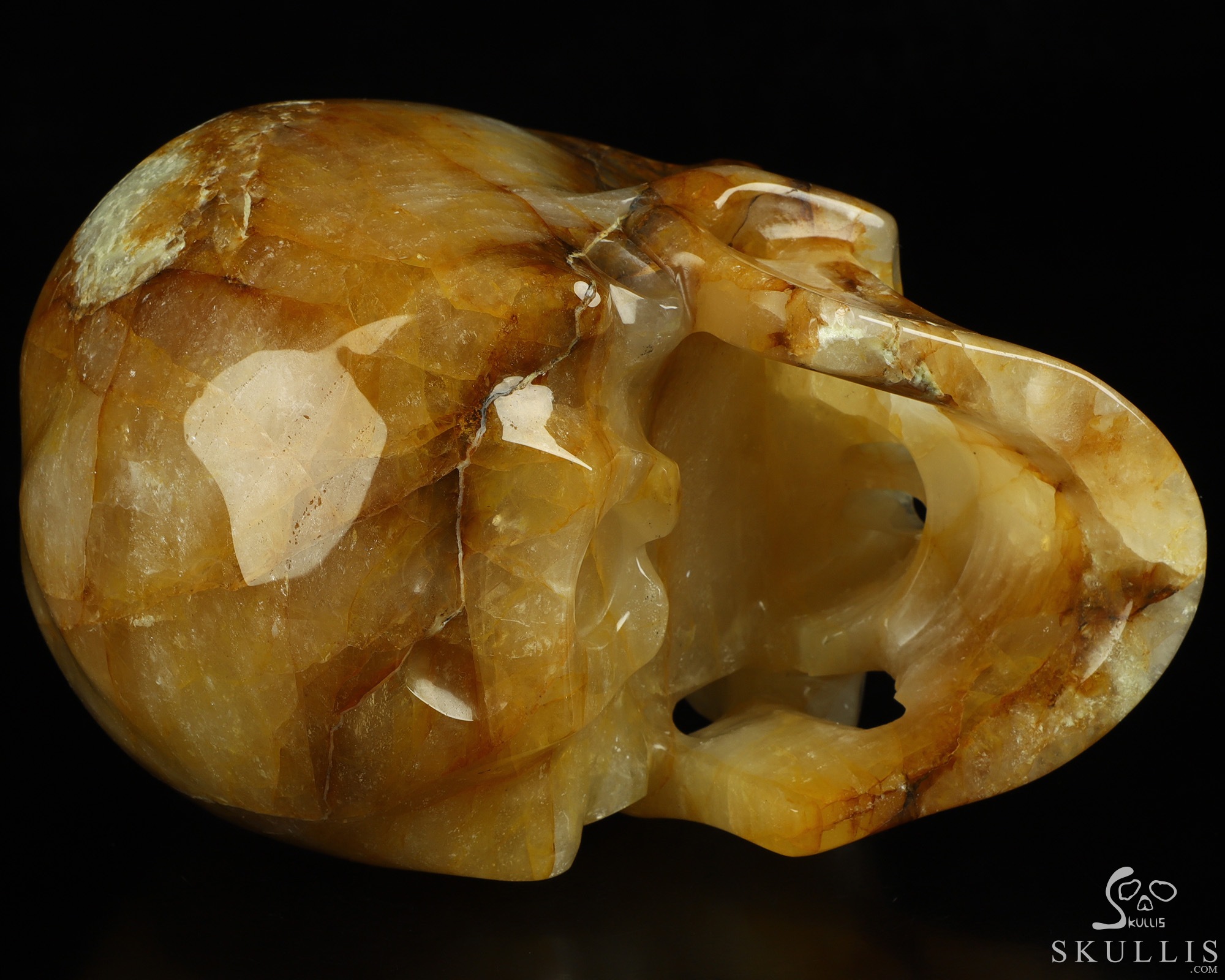 Super Realistic! Lifesized 7.0" Golden healer Hand Carved Crystal Skull, Crystal Healing