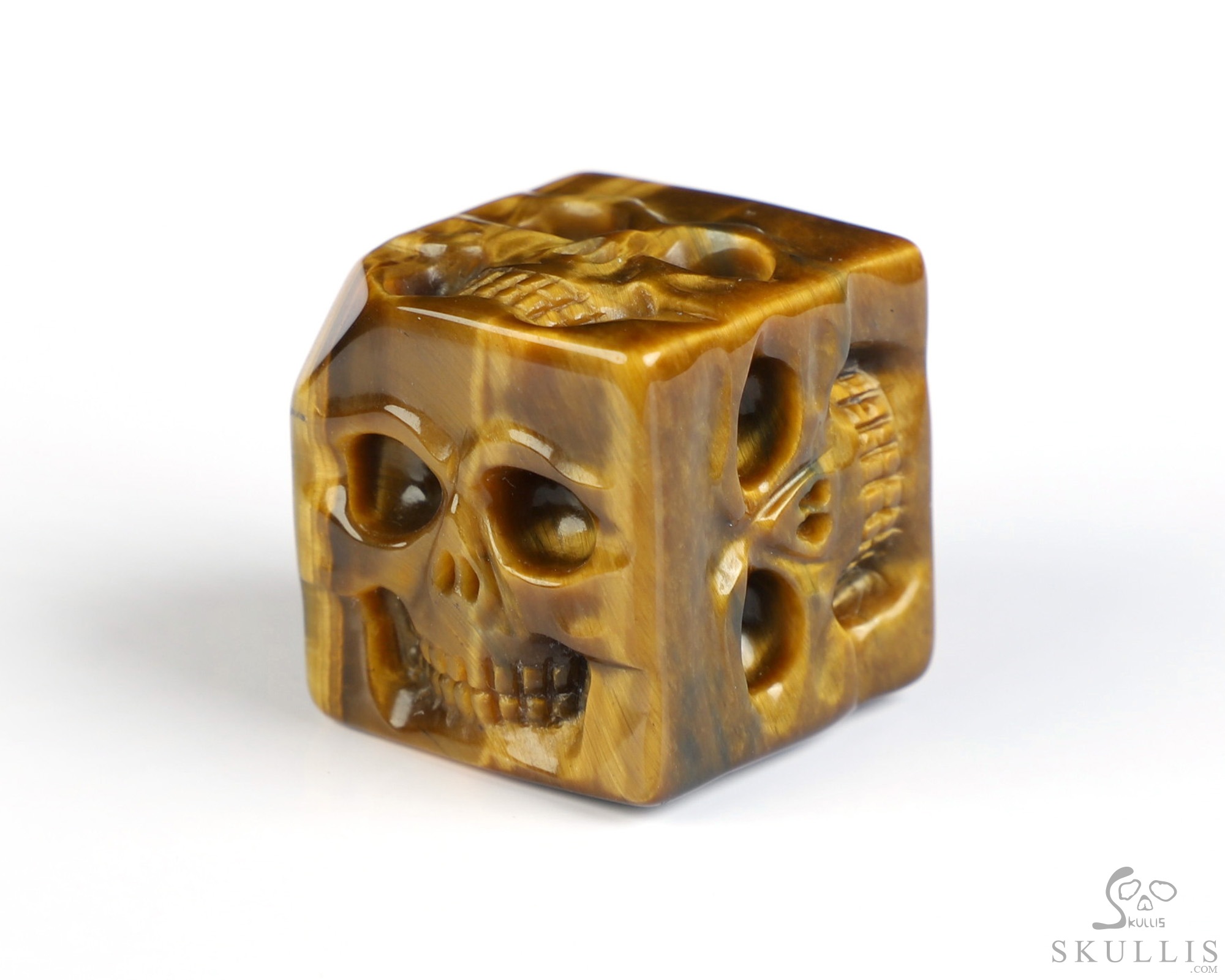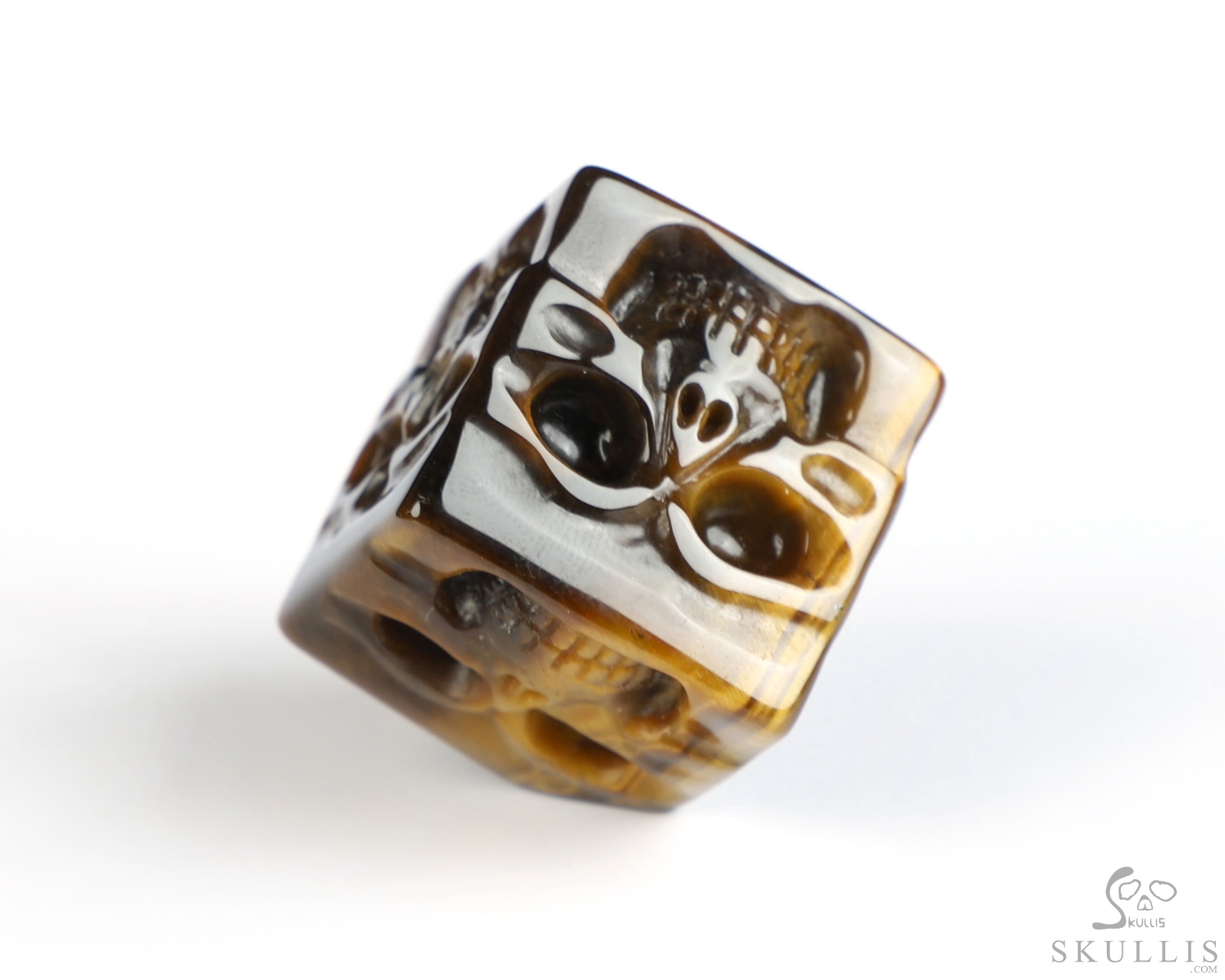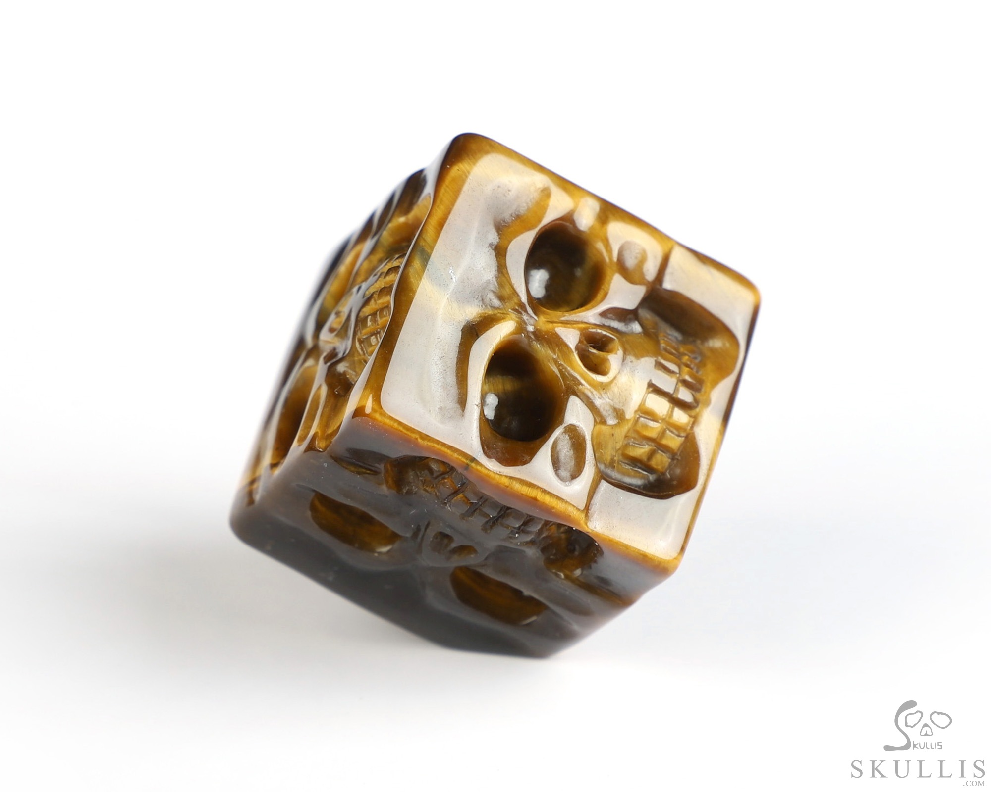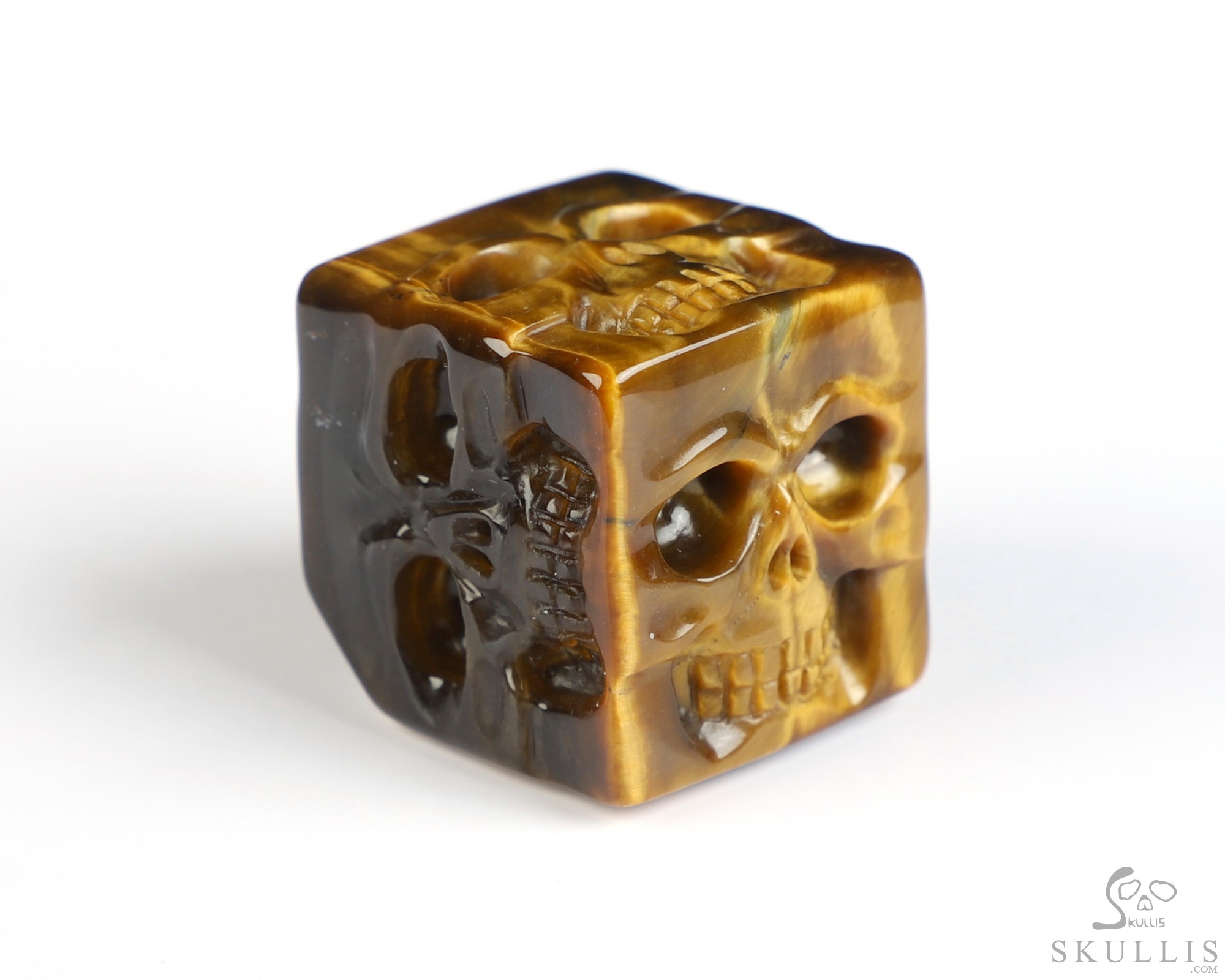 The Golden Balance - 0.9" Gold Tiger's Eye Hand-Carved Crystal Skull Cube — A Gravity-Defying Fine Art Crystal Sculpture, Crystal Healing