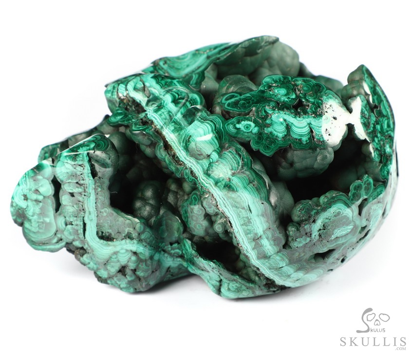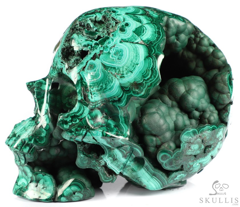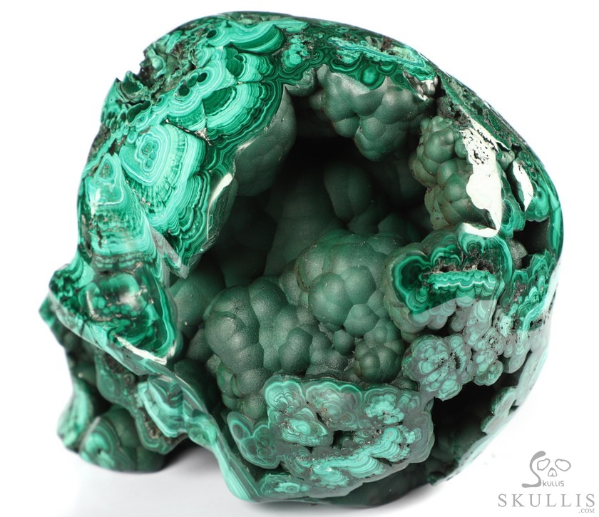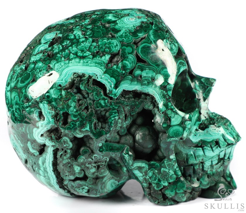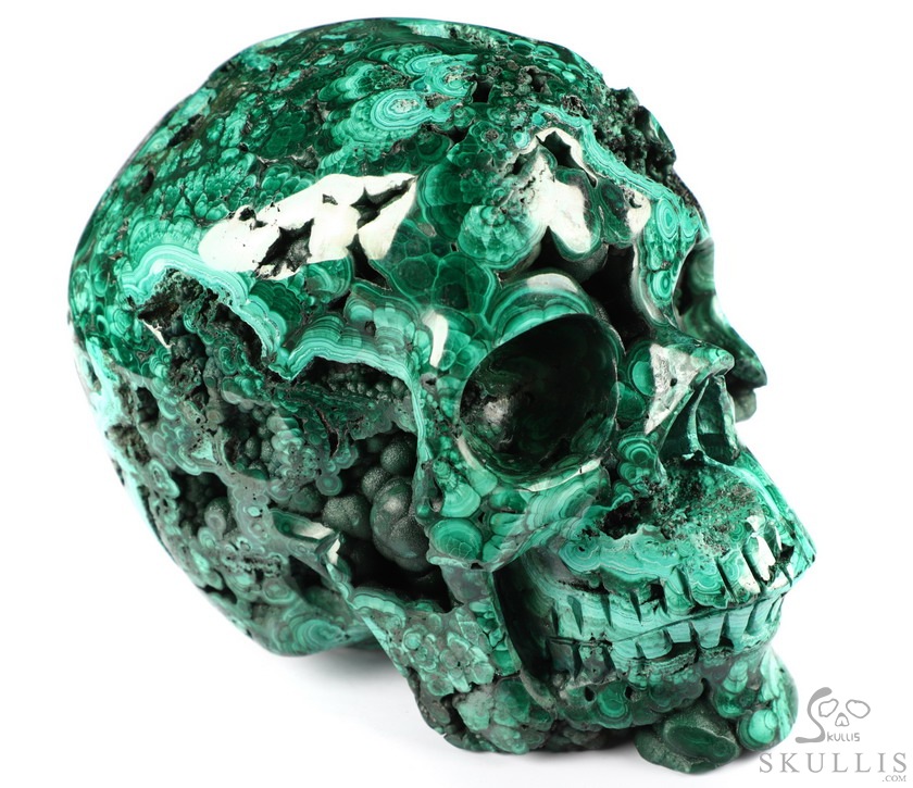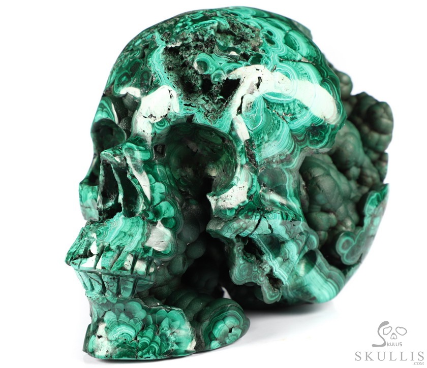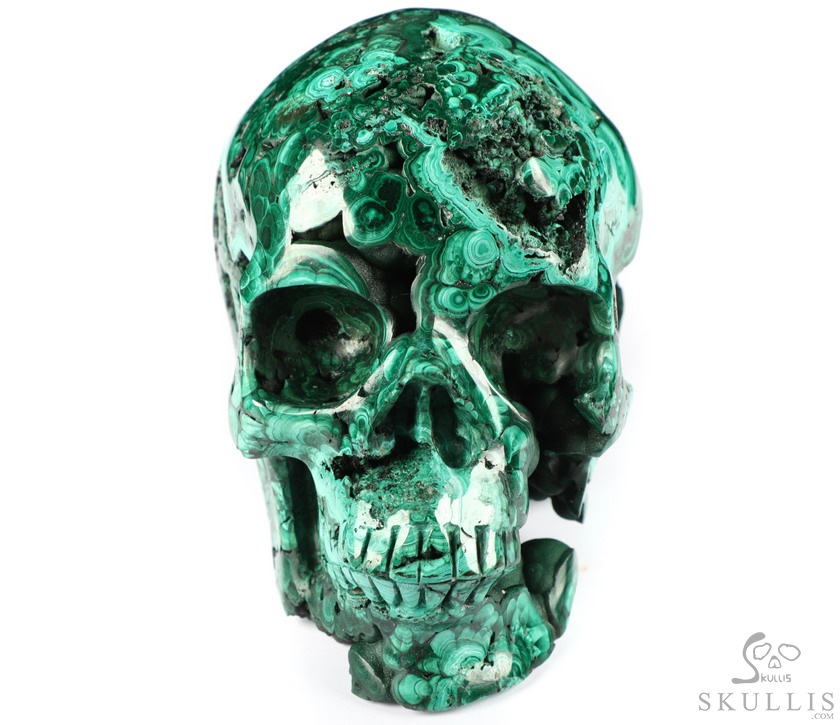 The Wise Man 5.0" Malachite Geode Carved Crystal Skull,Super Realistic, Crystal Healing