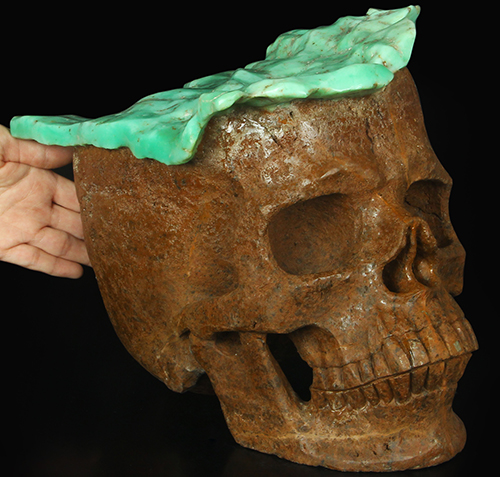 You are looking at a Chrysoprase Matrix skull. The skull is 12.1 inches from front to back.