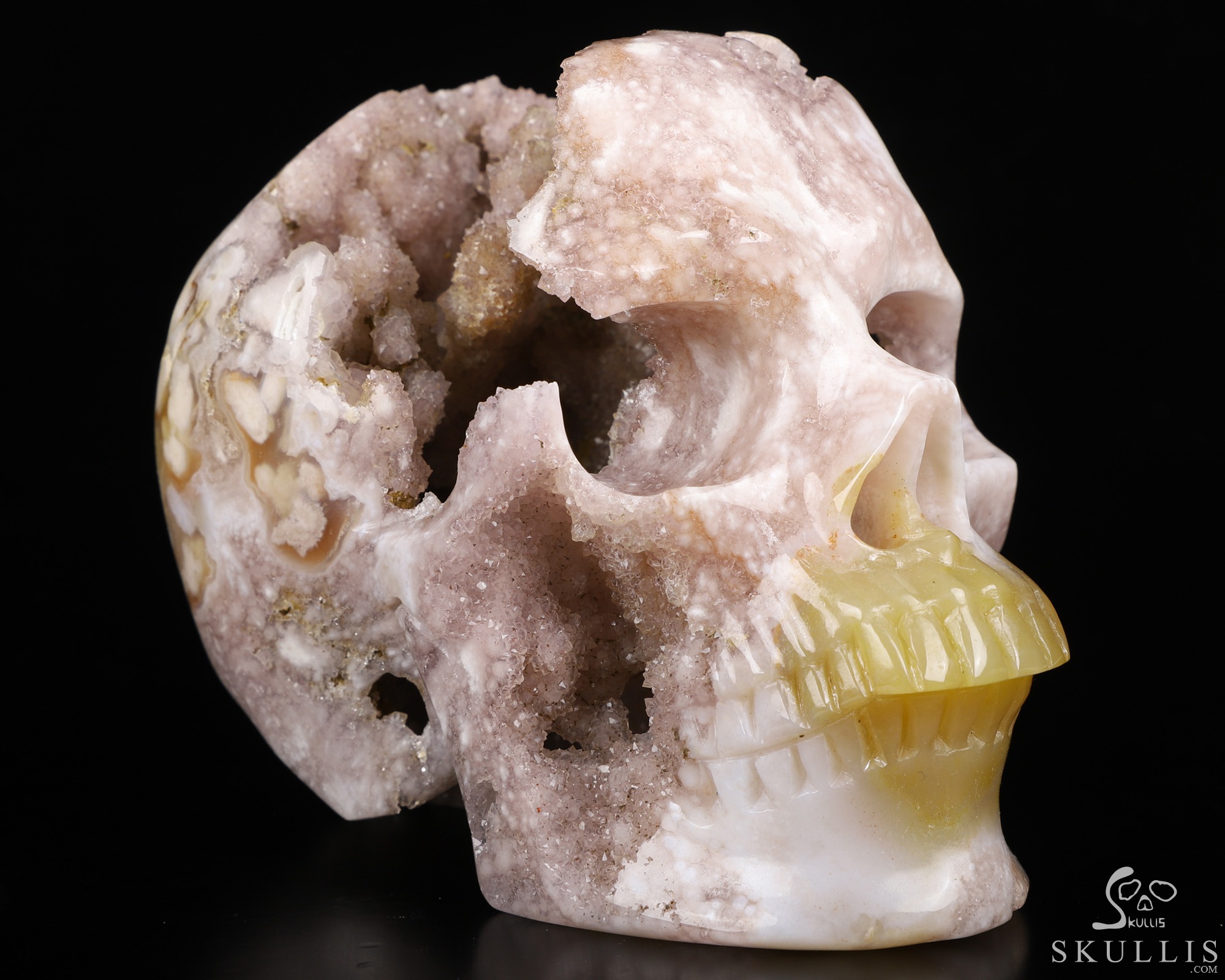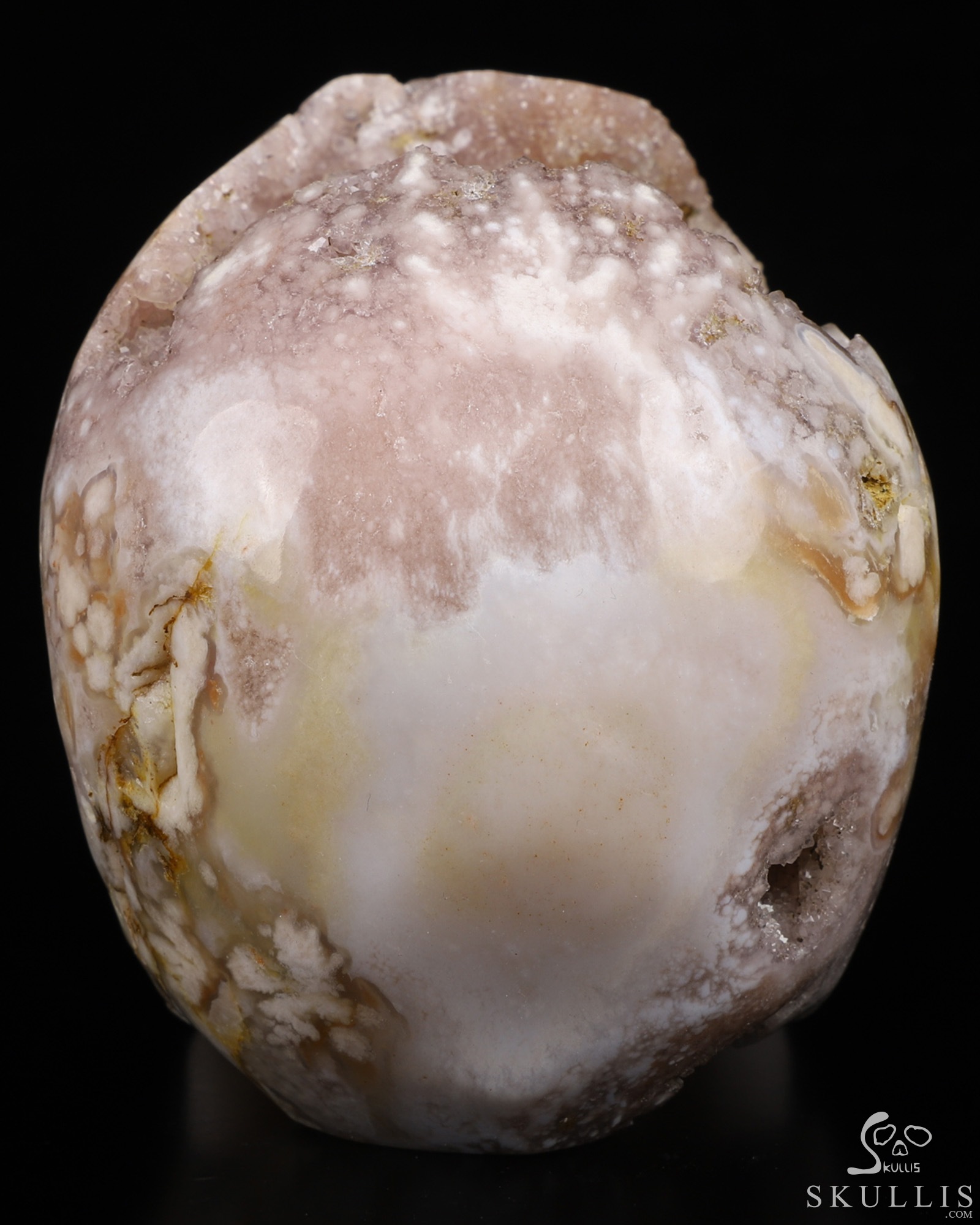 Top Quality 4.4" Sakura Agate Geode Carved Crystal Skull,Super Realistic, Crystal Healing