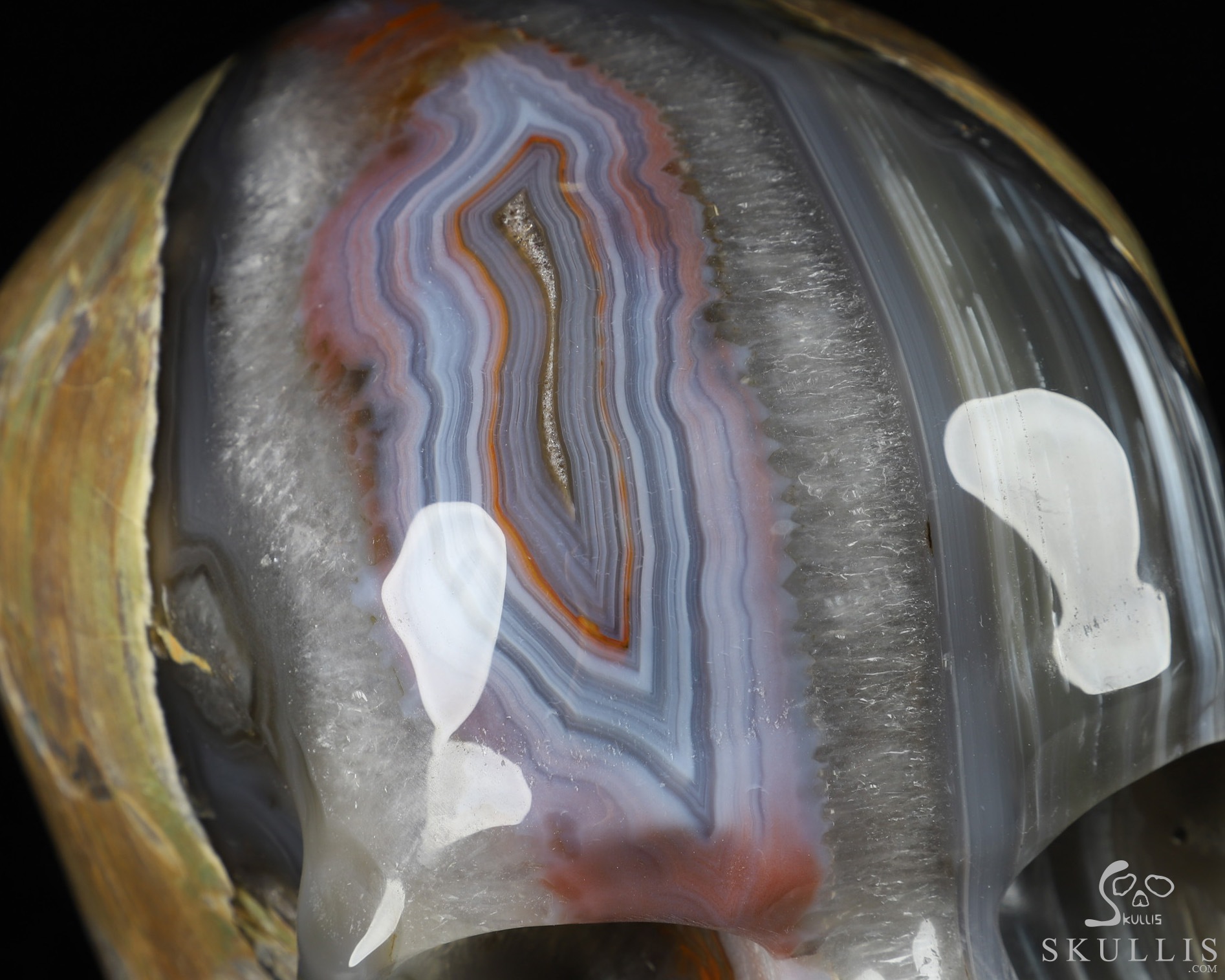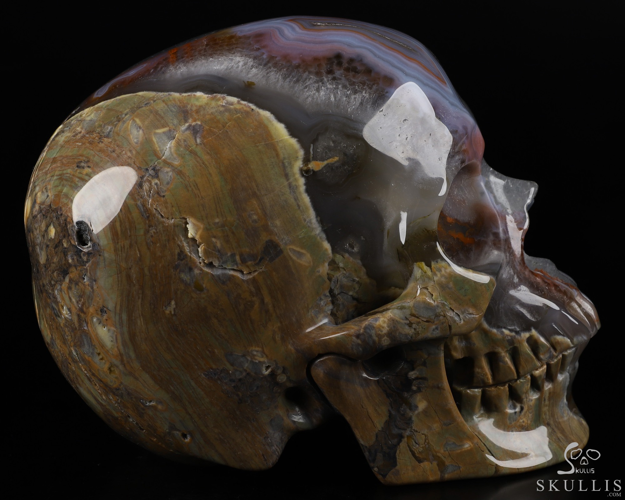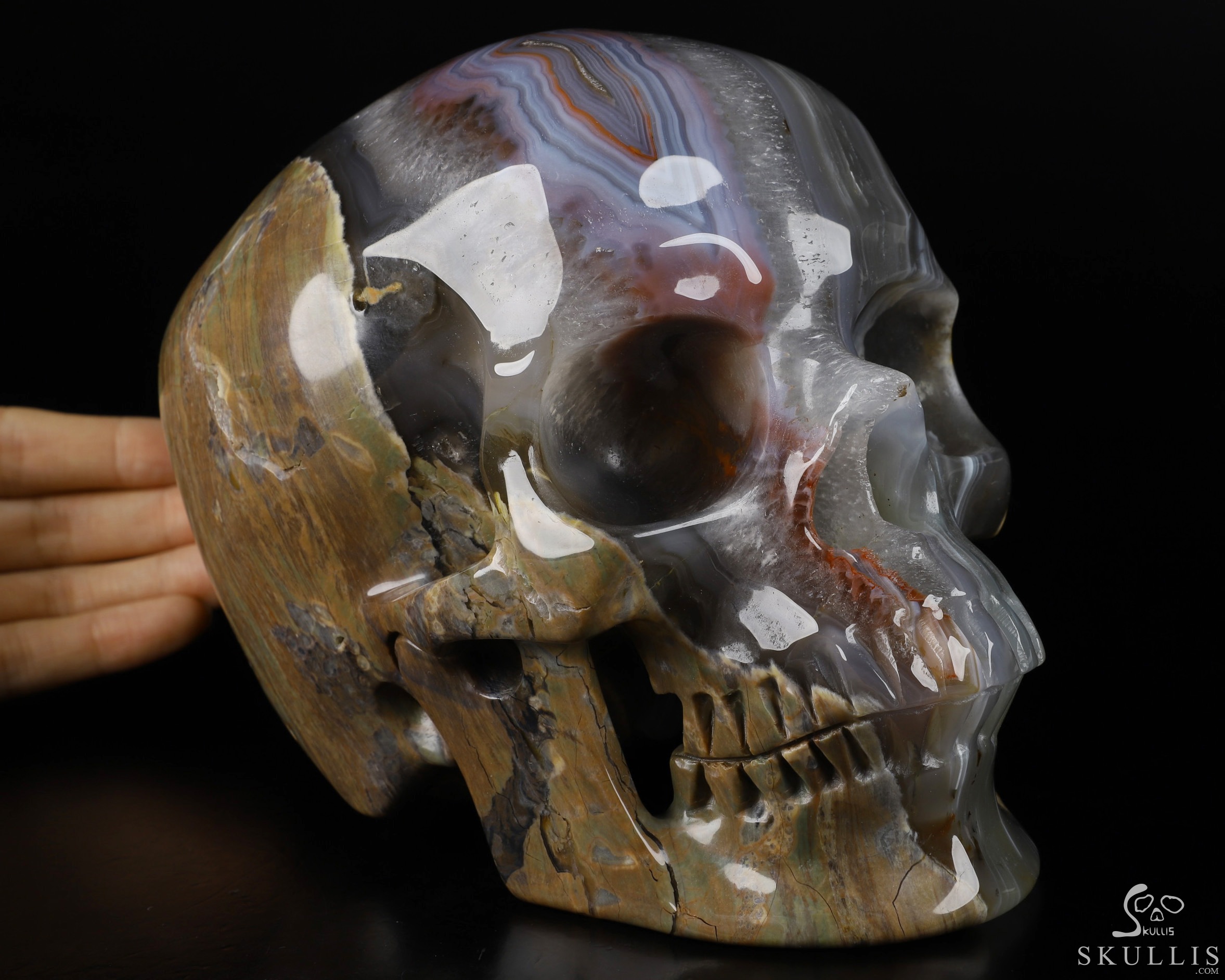 Amazing Lifesized 8.0" Dinosaur Egg Agate Carved Crystal Skull