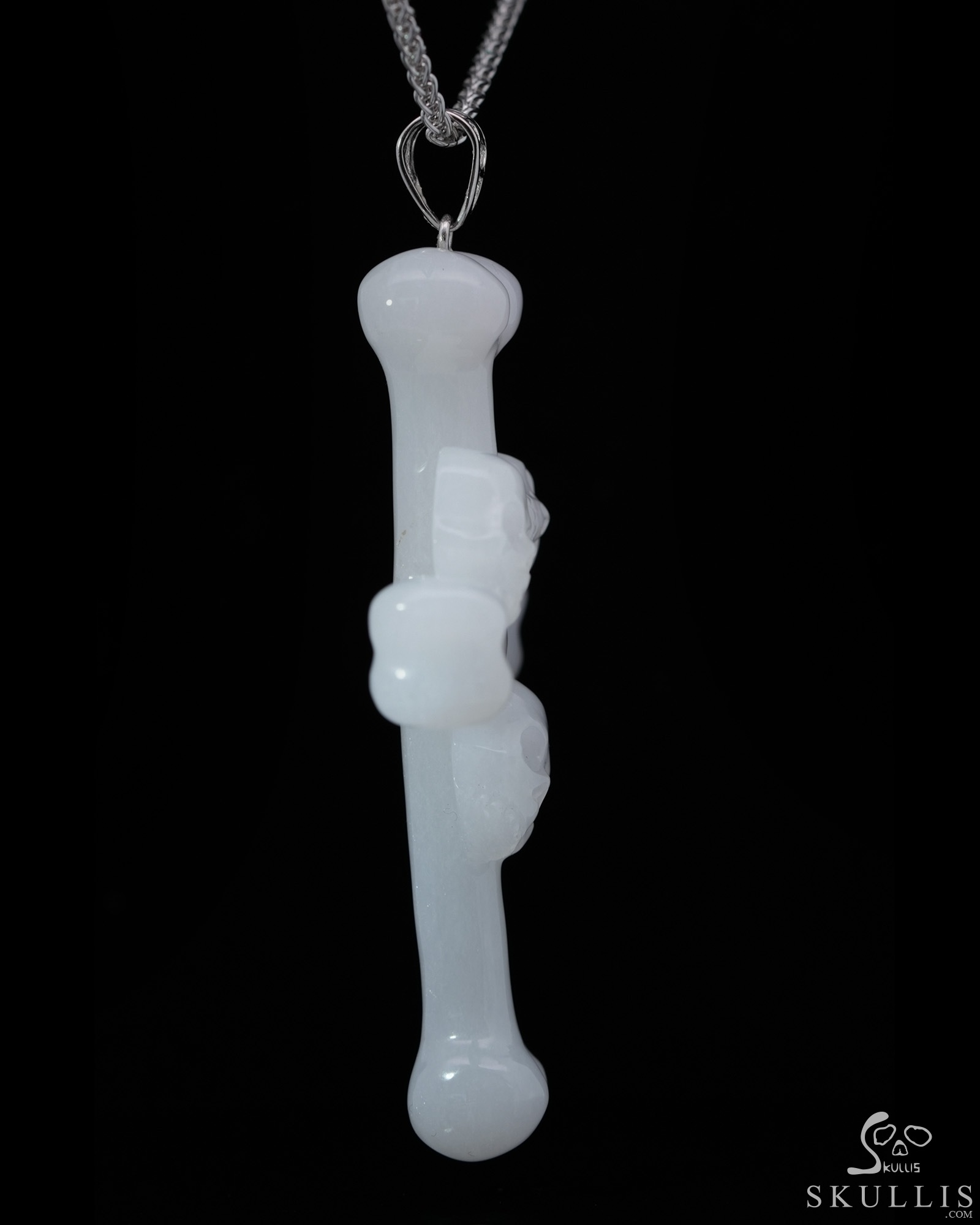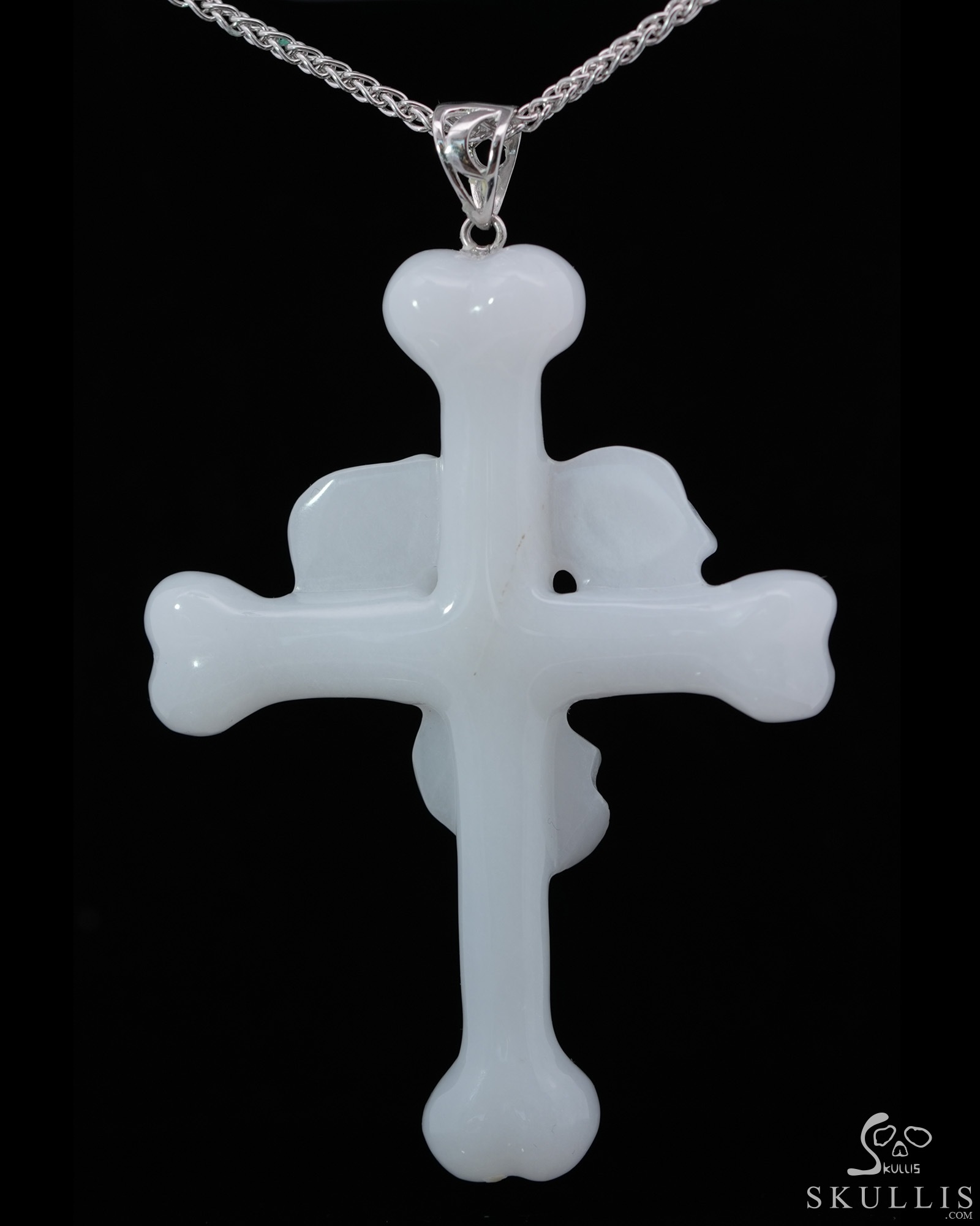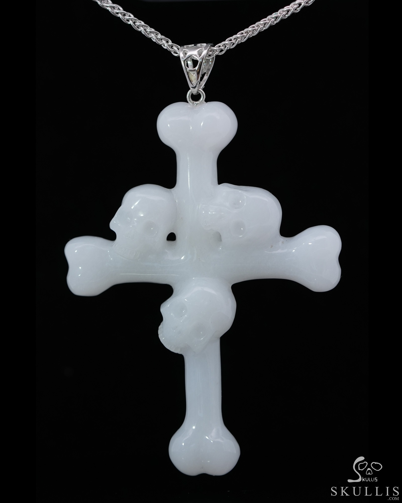 Triad Crystal Skull Pendant - White Jade Carved Crystal Skull Trio and Bones Cross Pendant, for Women & Men