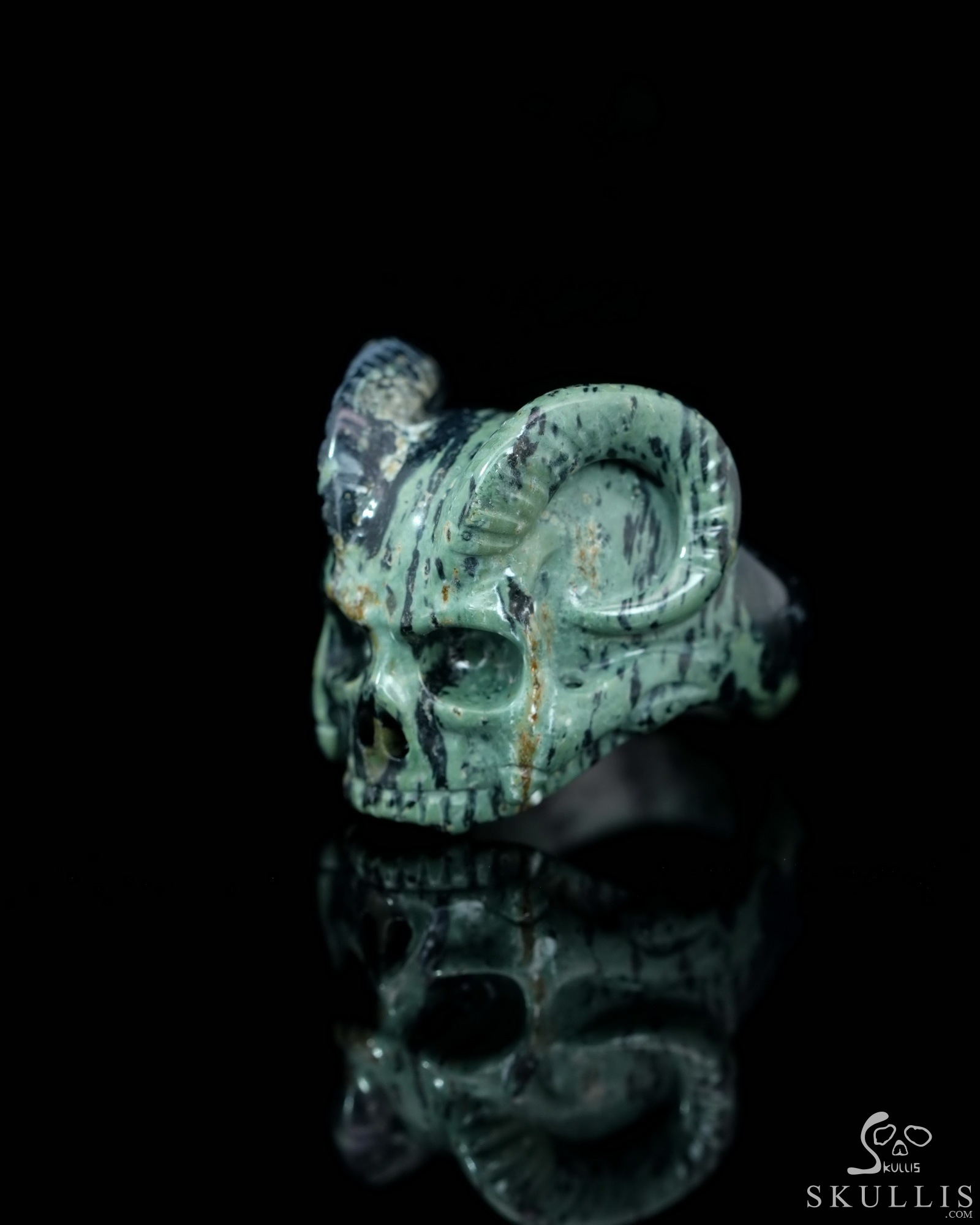 US Size 11# Kambaba Jasper Hand Carved Crystal Skull Ring, Skull Jewelry