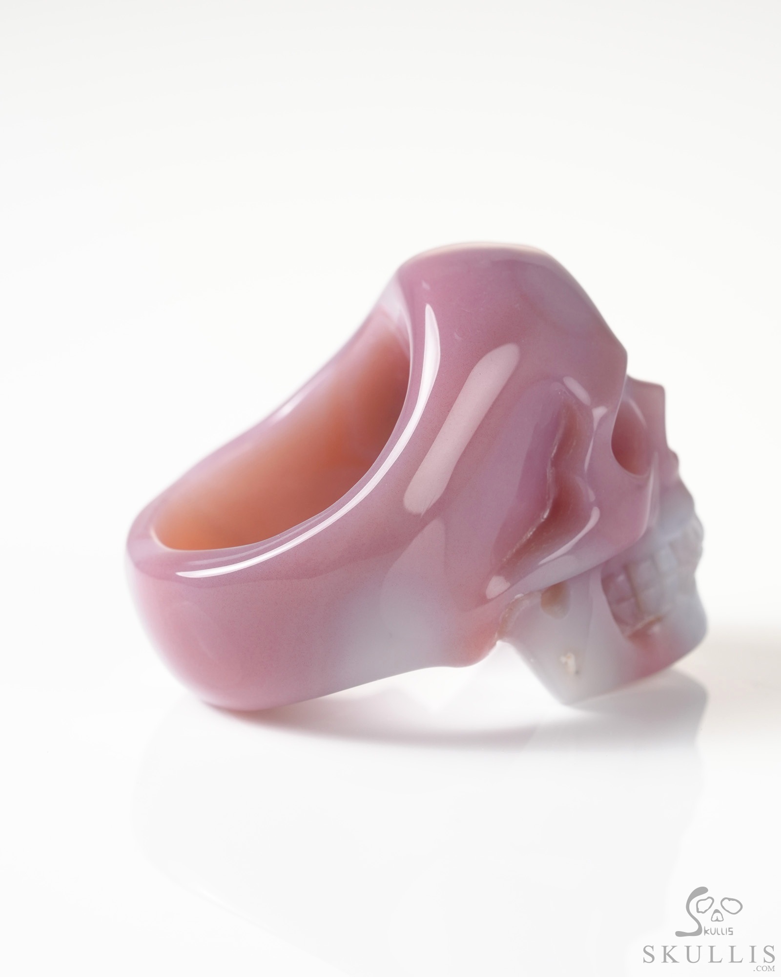 US Size 12# Gemstone Mozambique Agate Hand Carved Crystal Skull Ring, Skull Jewelry