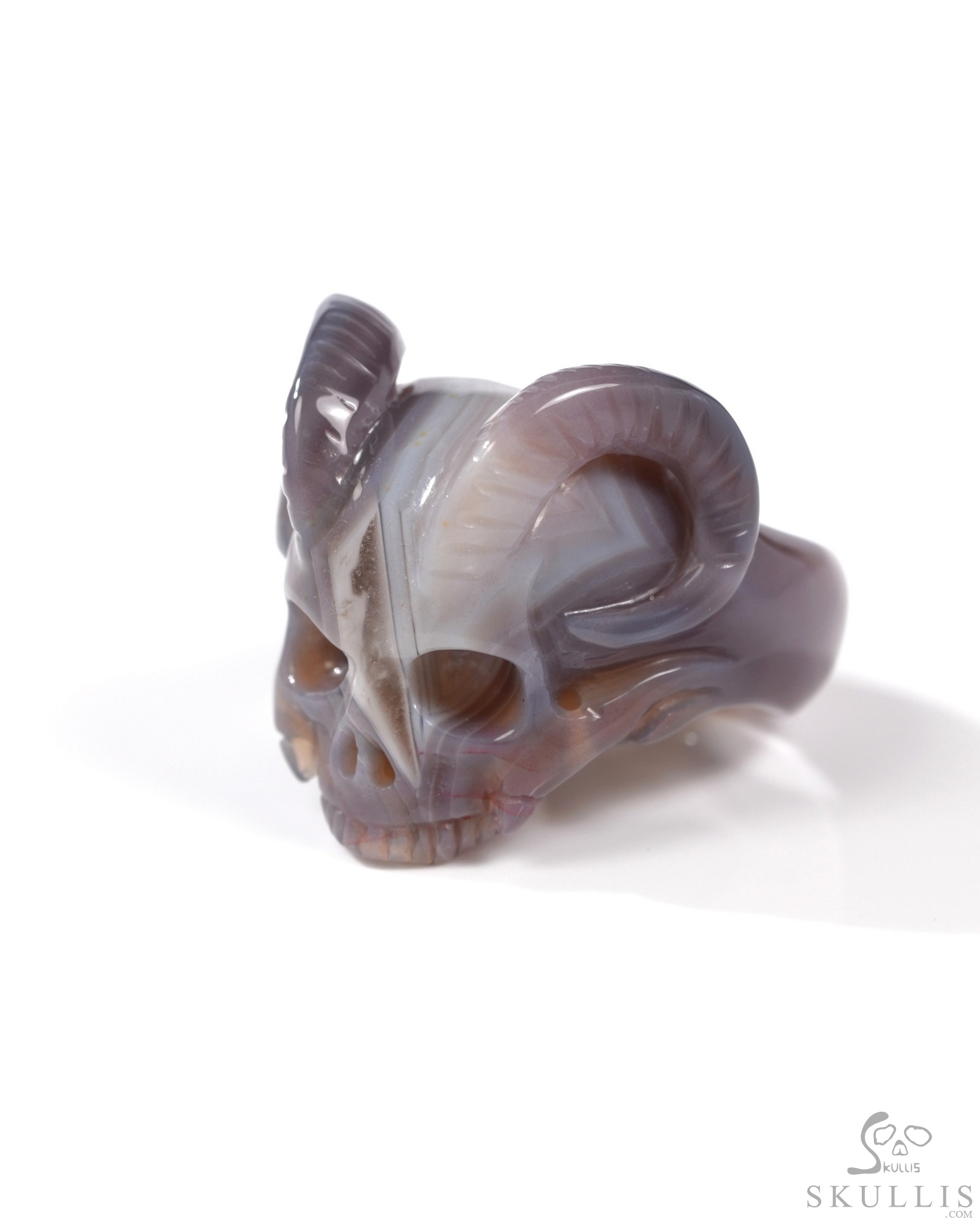 You are looking at a Mozambique Agate skull. The skull is 1.1 inches from top to bottom.