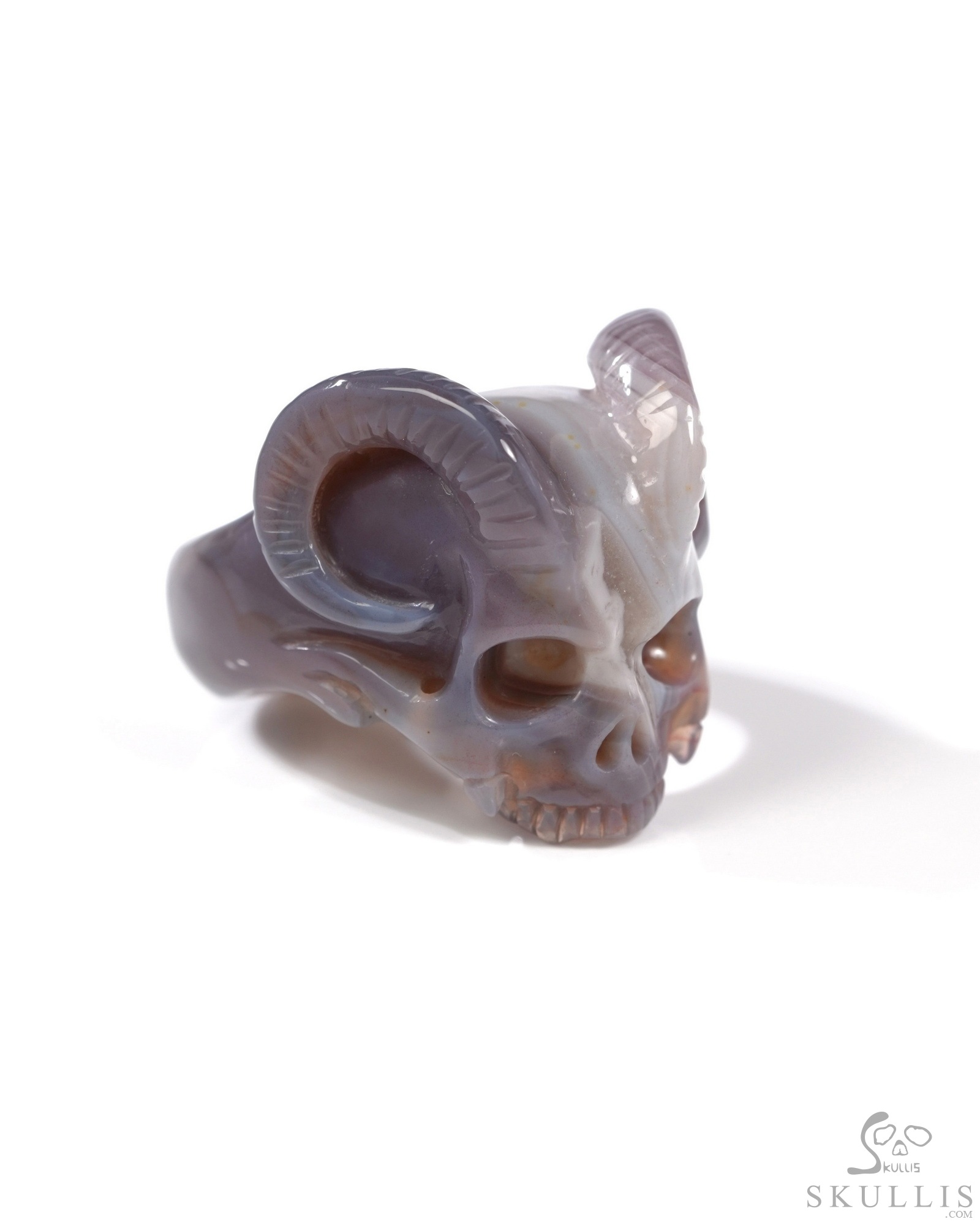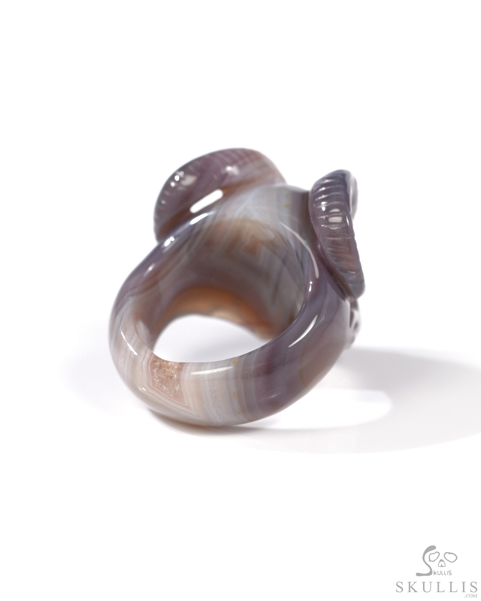 Gemstone Mozambique Agate Hand Carved Crystal Skull Ring, Skull Jewelry