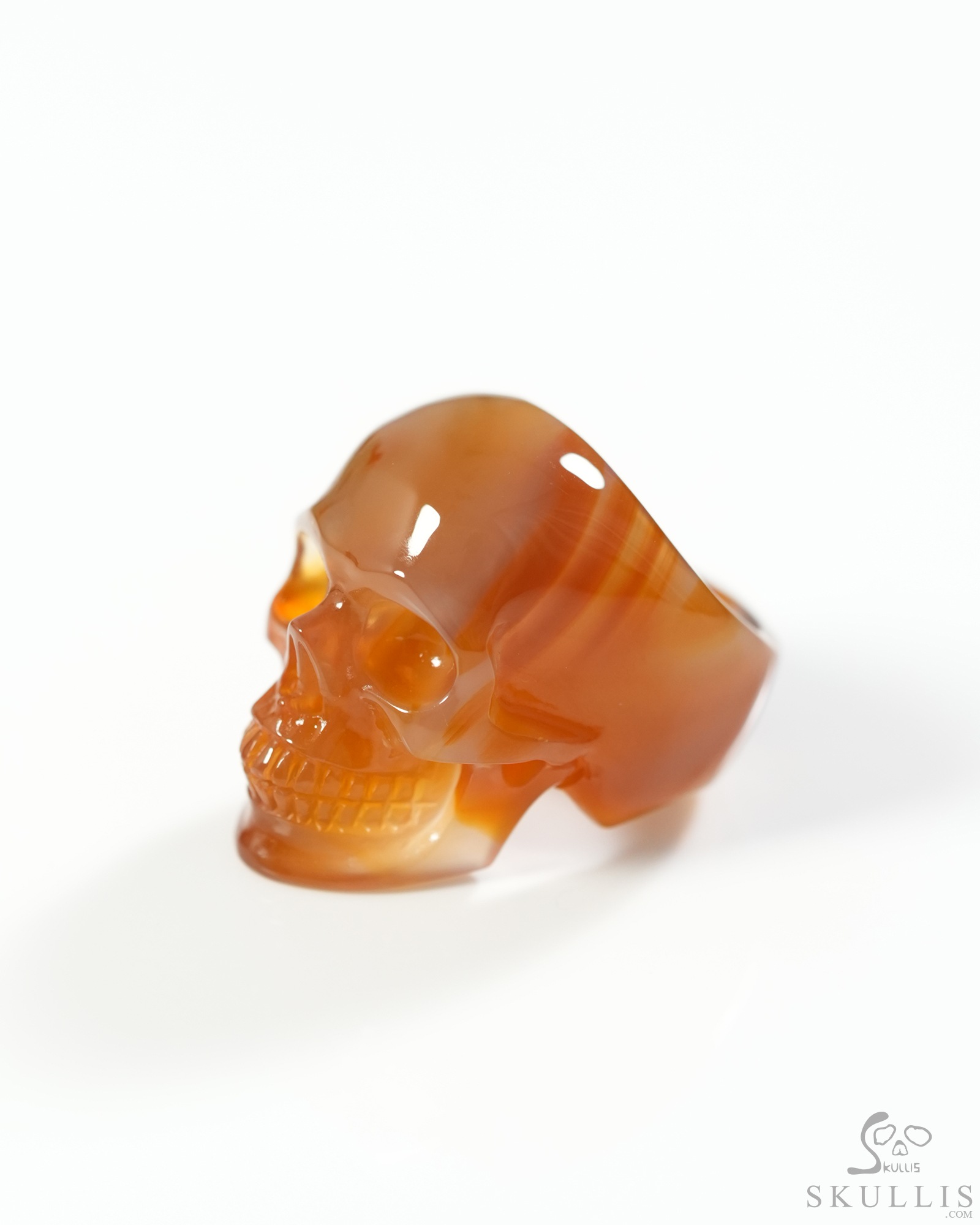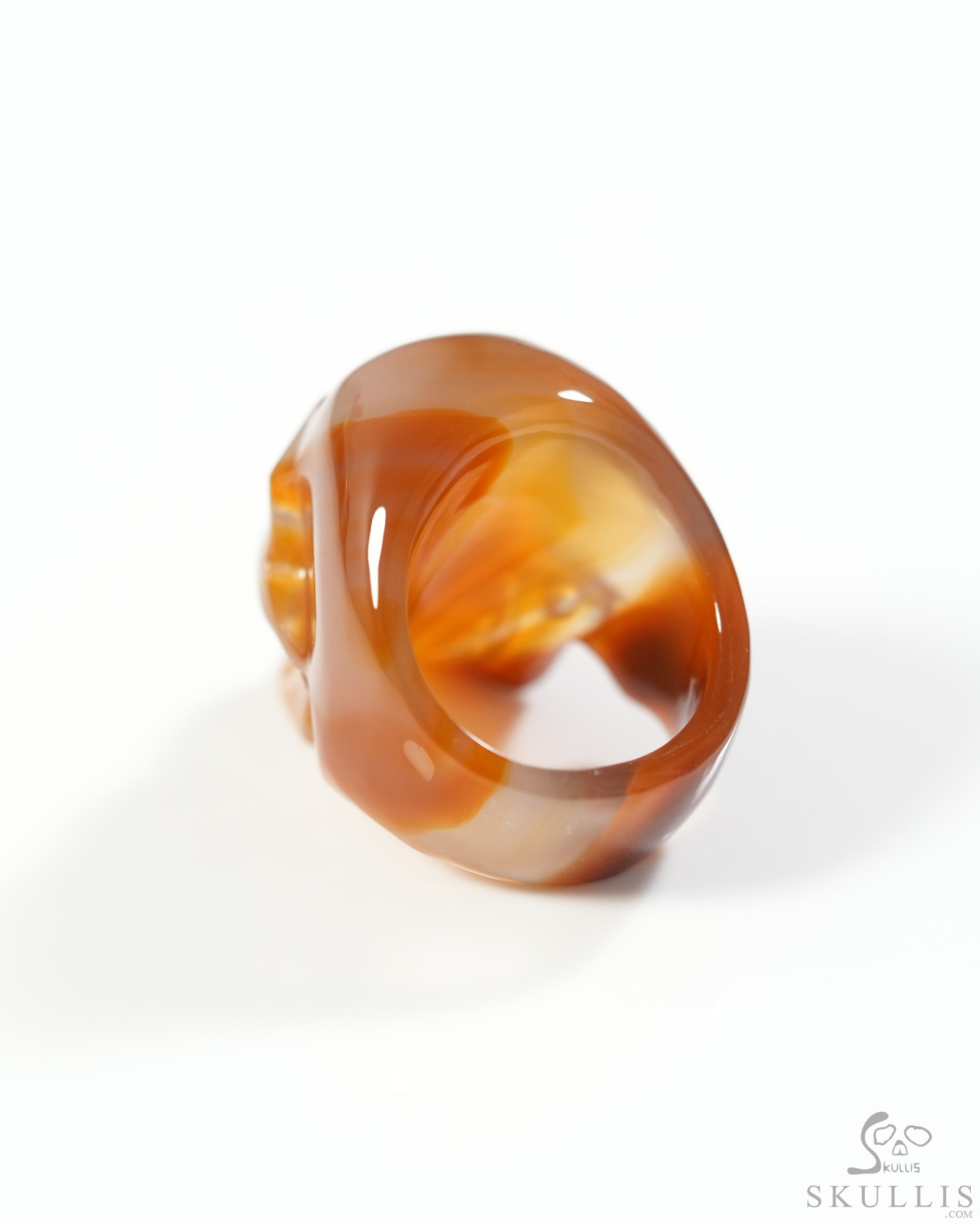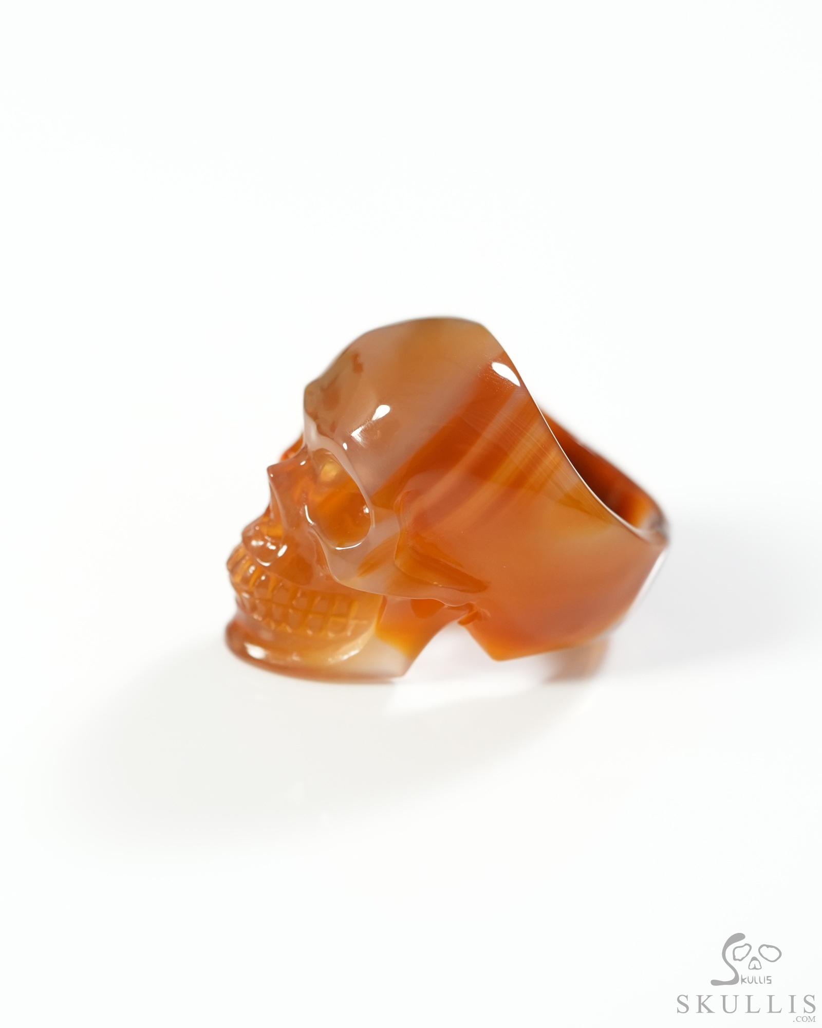 US Size 8.5# Agate Hand Carved Crystal Skull Ring, Skull Jewelry