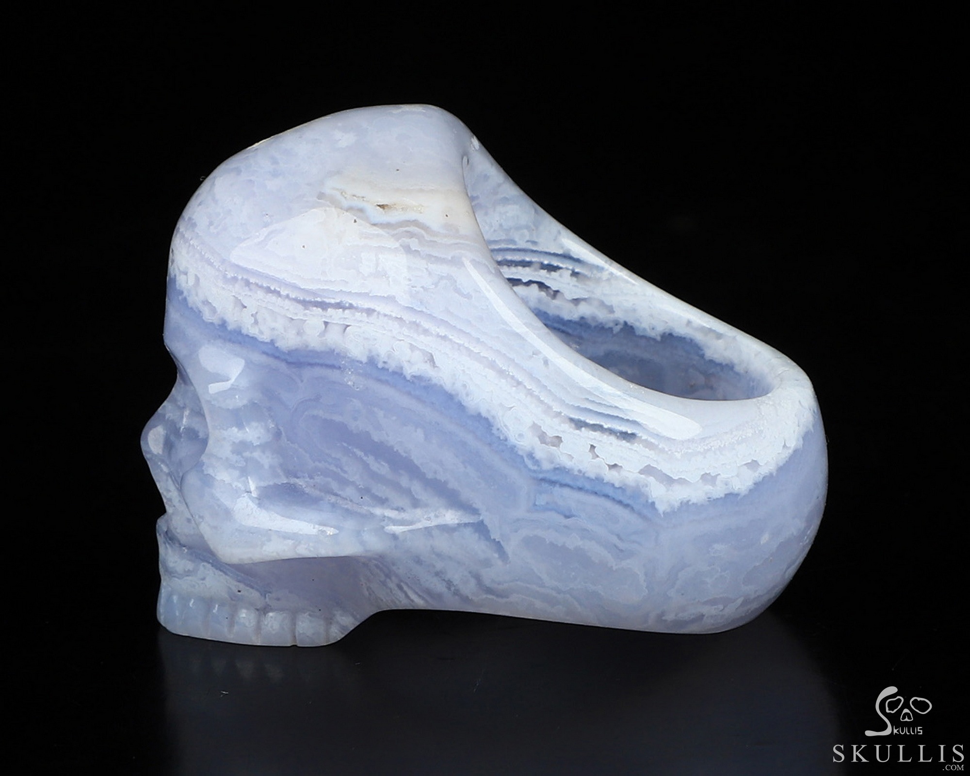 Gemstone 3.9" Blue Lace Agate Hand Carved Crystal Skull, Super Realistic, Crystal Healing