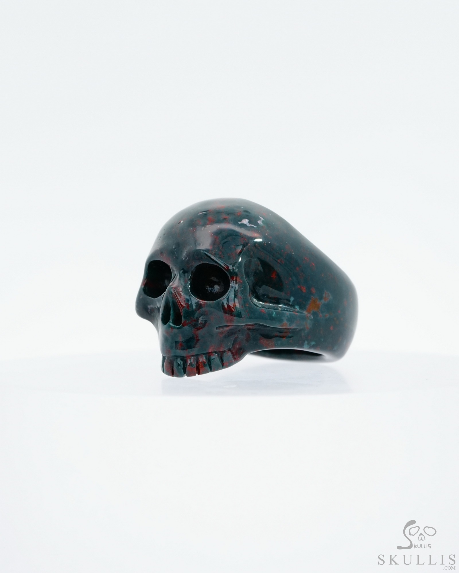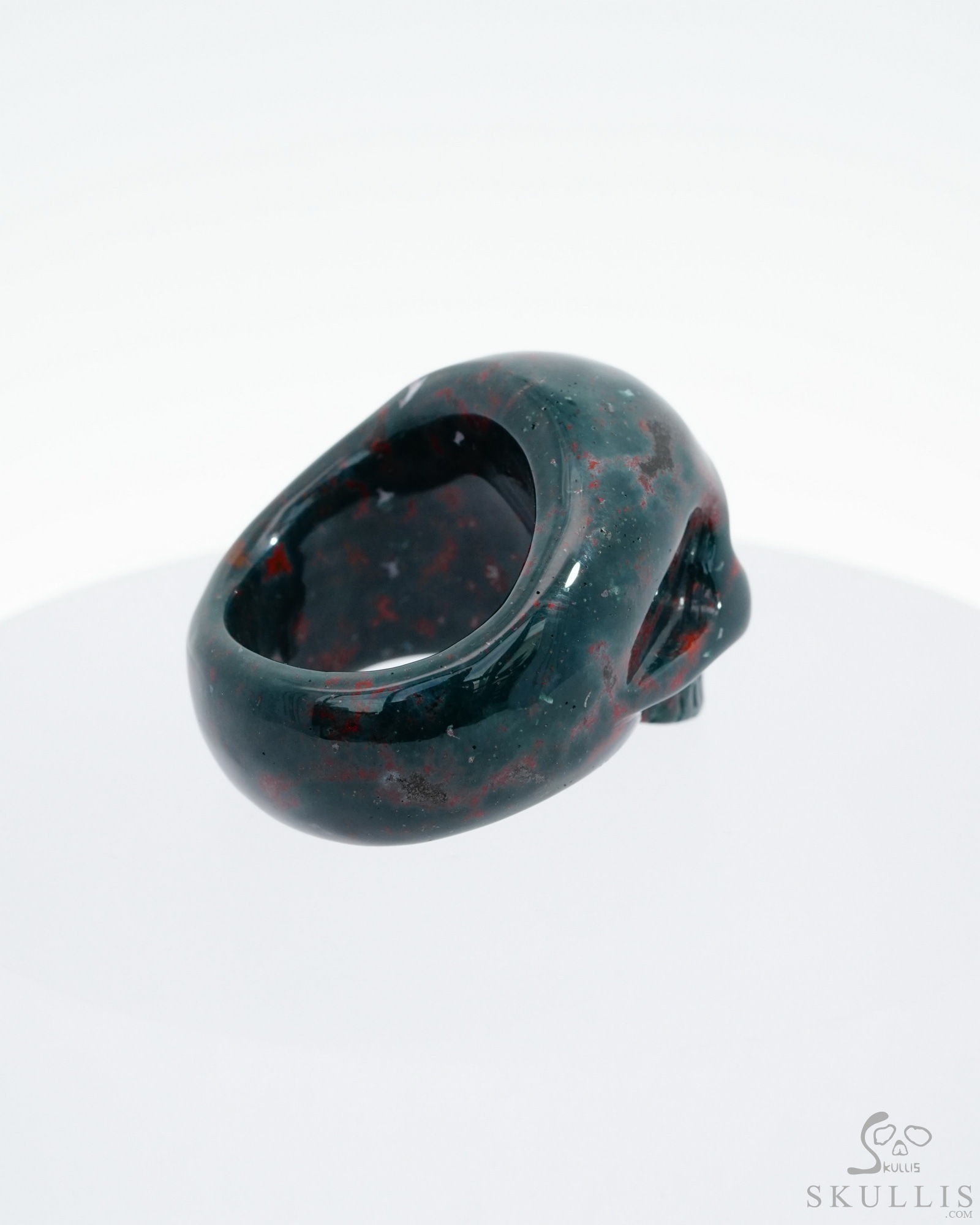US Size 9# Bloodstone Hand Carved Crystal Skull Ring, Skull Jewelry