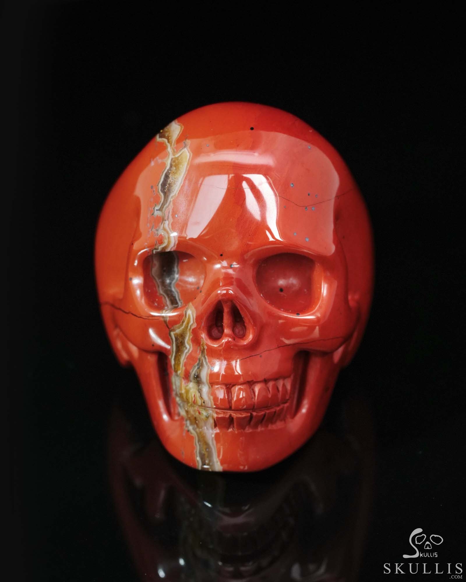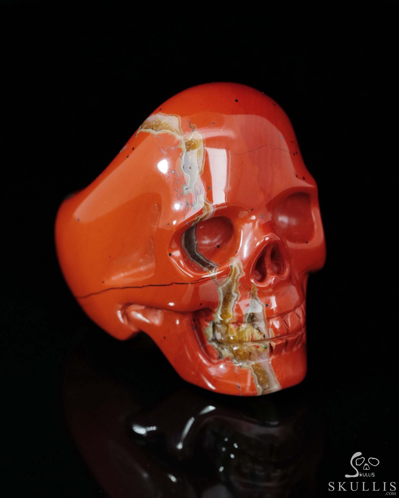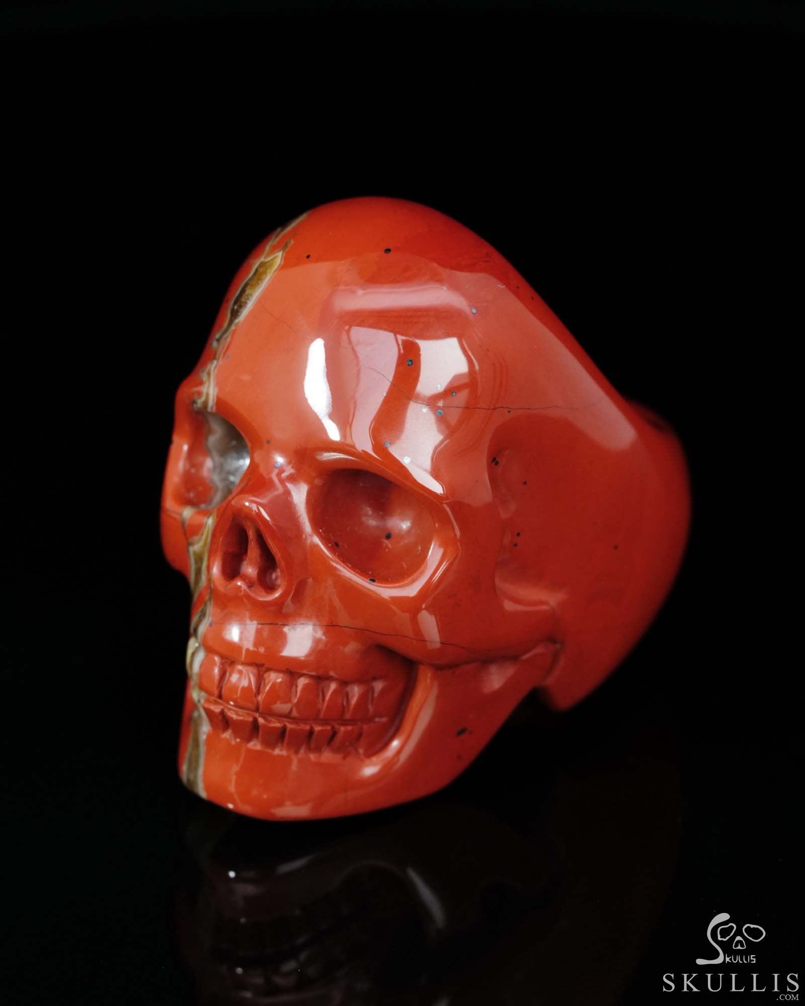 Skullis Signature Solid Red Jasper Carved Gemstone Crystal Skull Ring