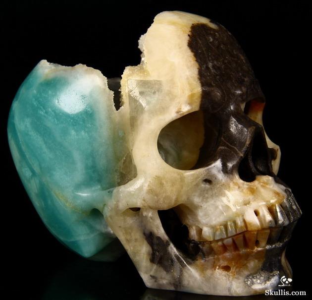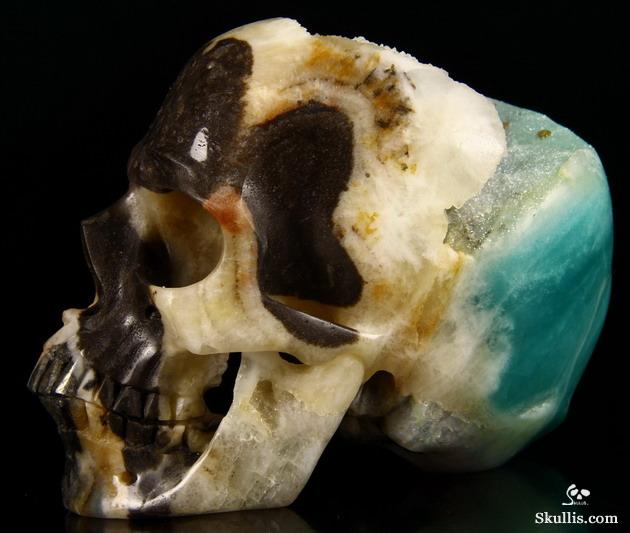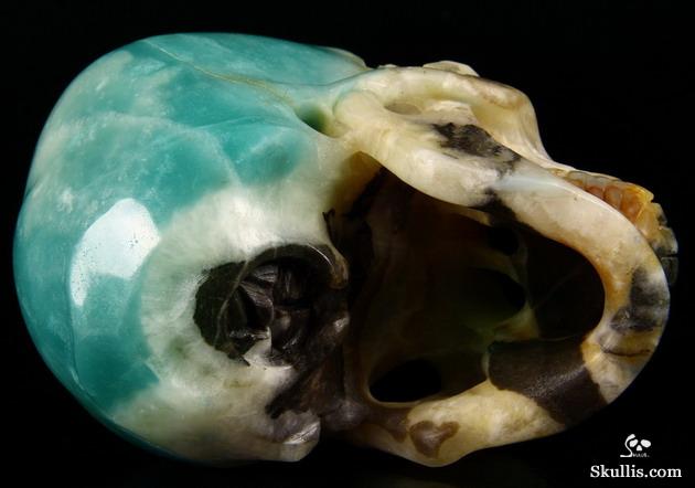 3.5" Chinese Amazonite Hand Carved Guardian Crystal Skull Sculpture, Crystal Healing