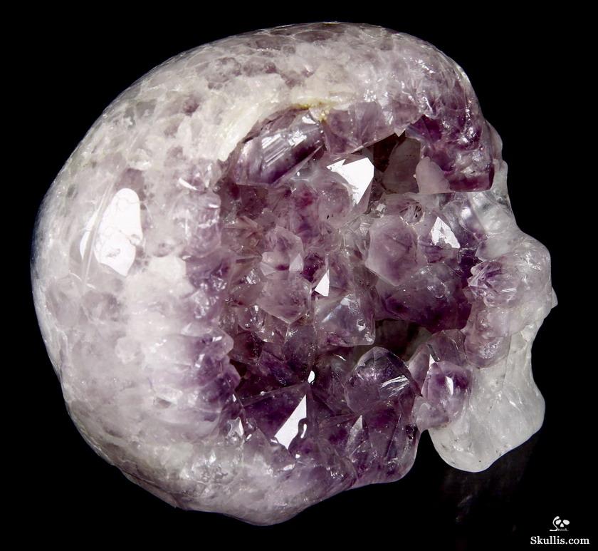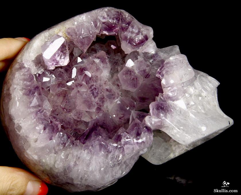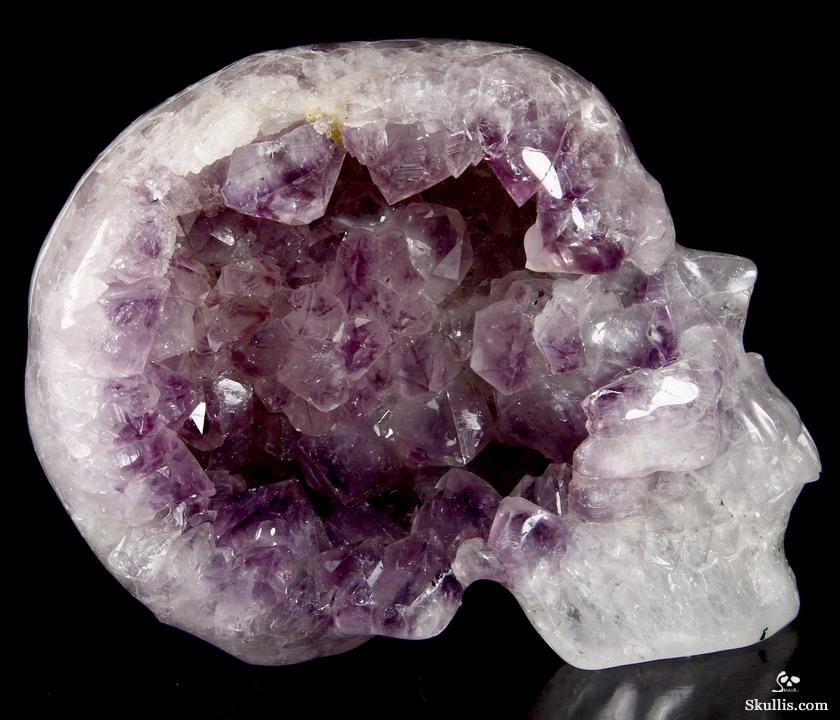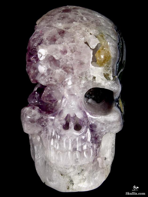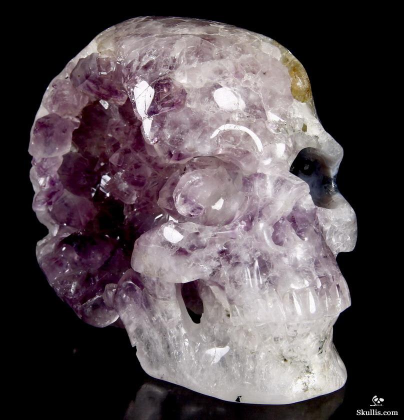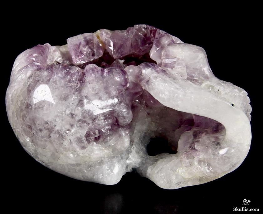 Unique Huge 5.3" Amethyst Geode Carved Crystal Skull Sculpture