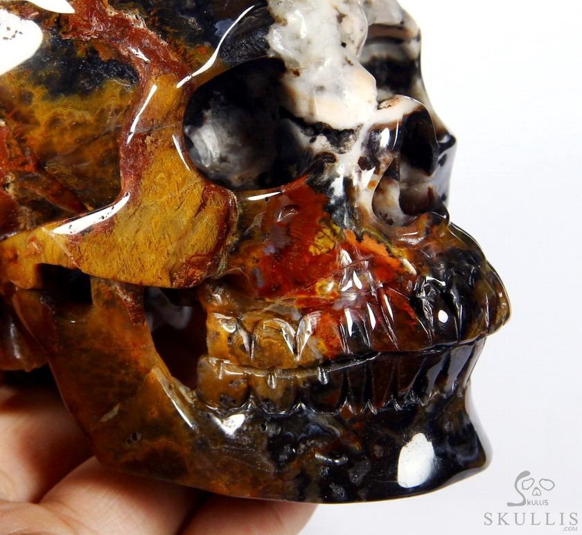 GEMSTONE 5.0" Black Zebra Agate Carved Crystal Skull,Super Realistic, Crystal Healing