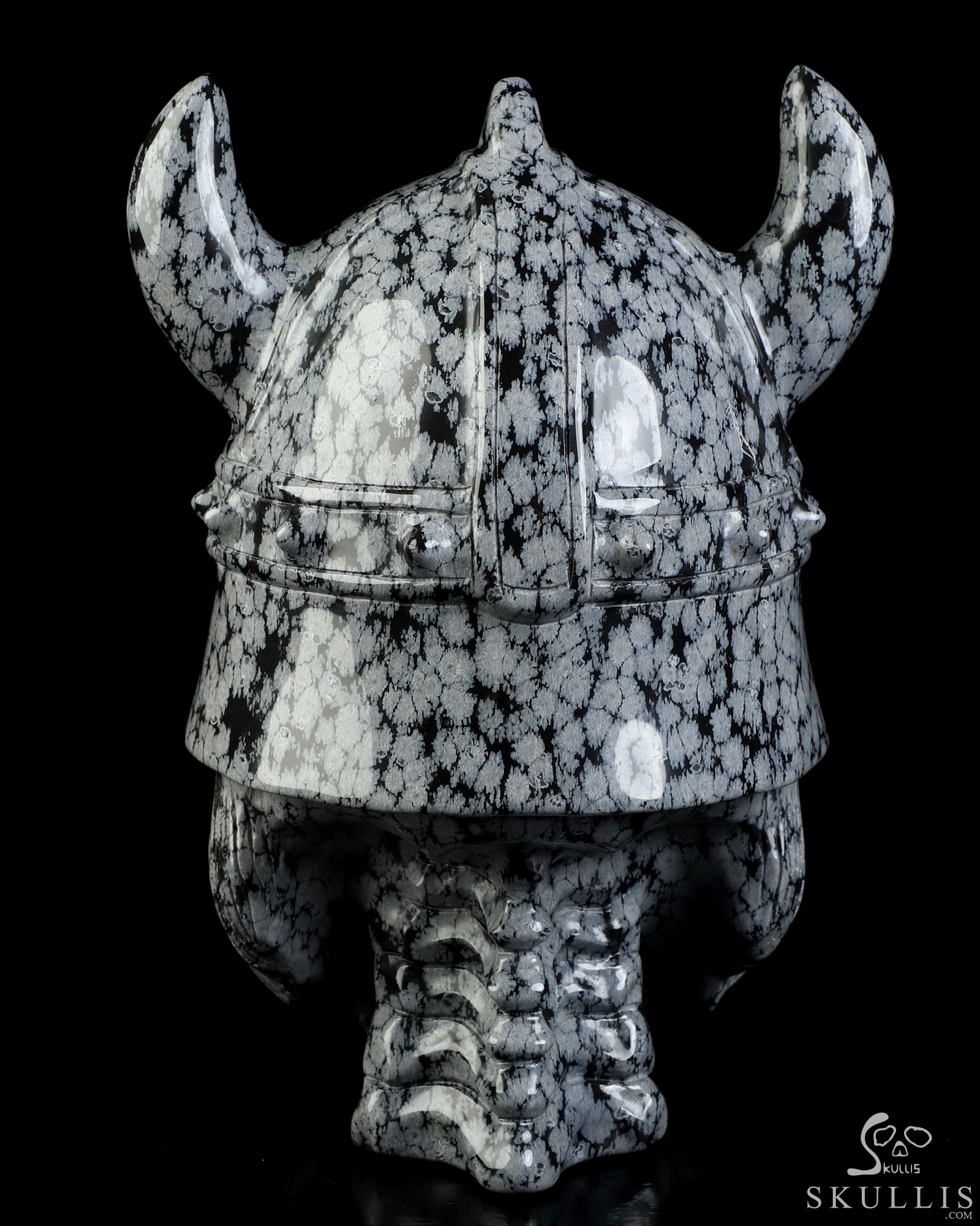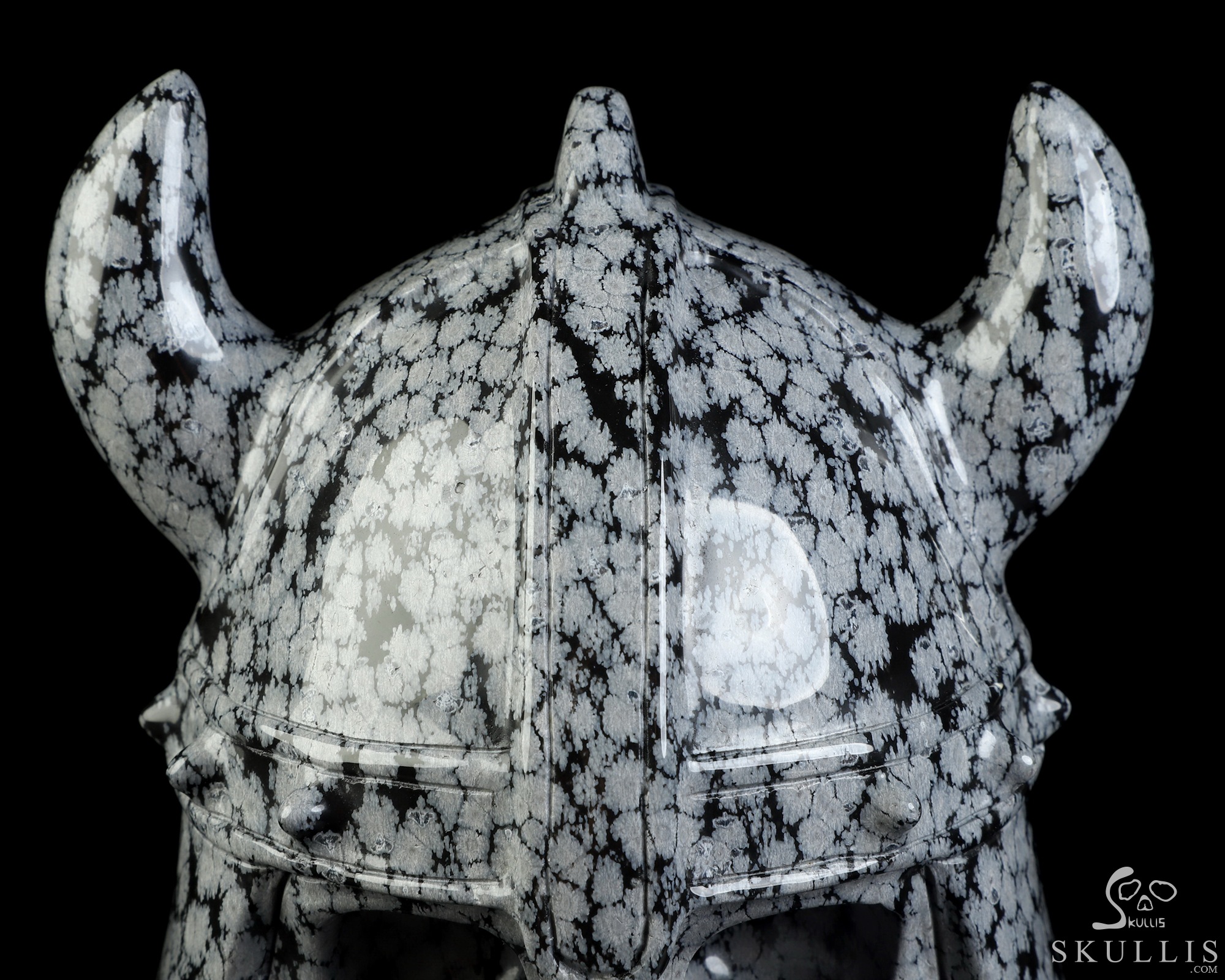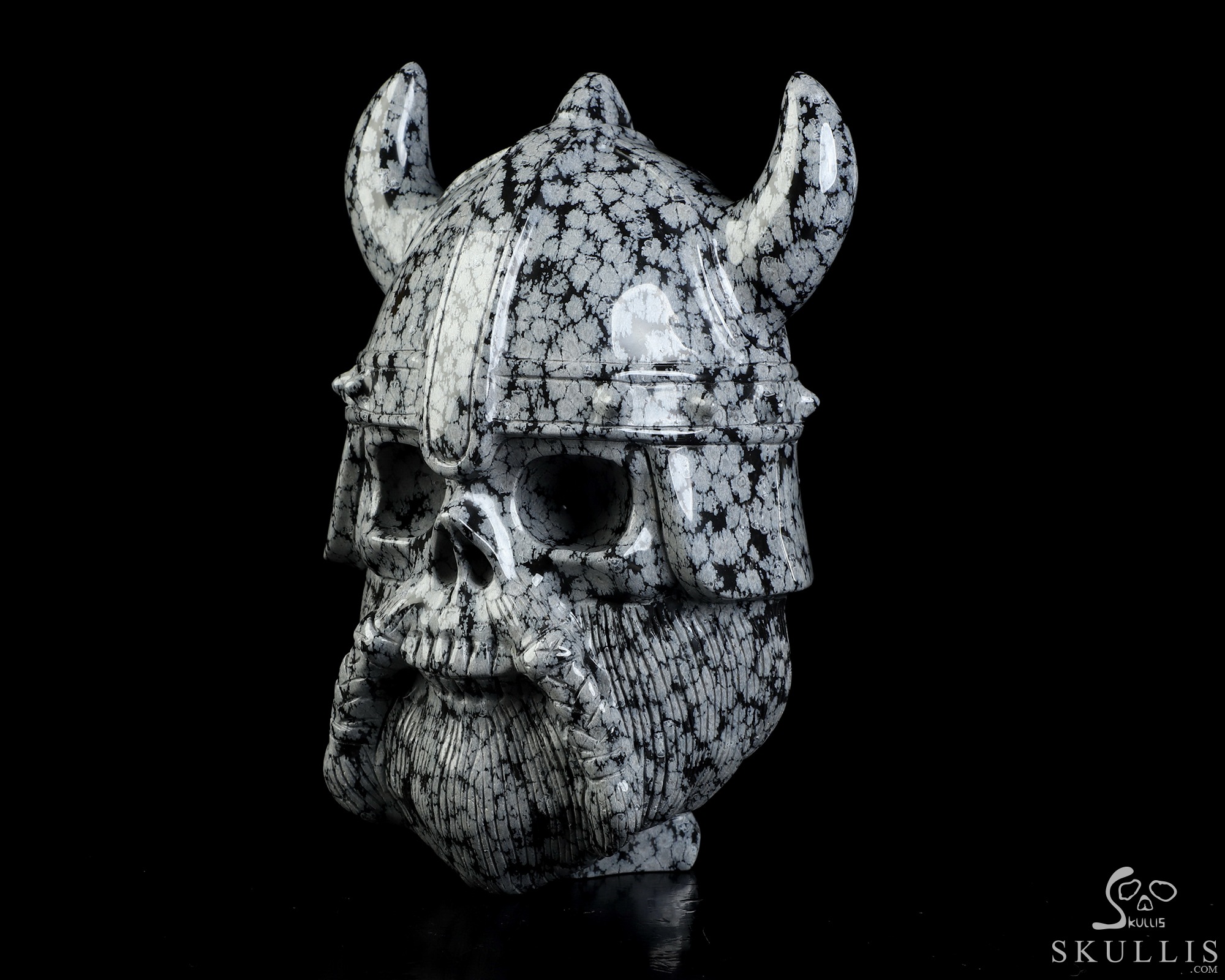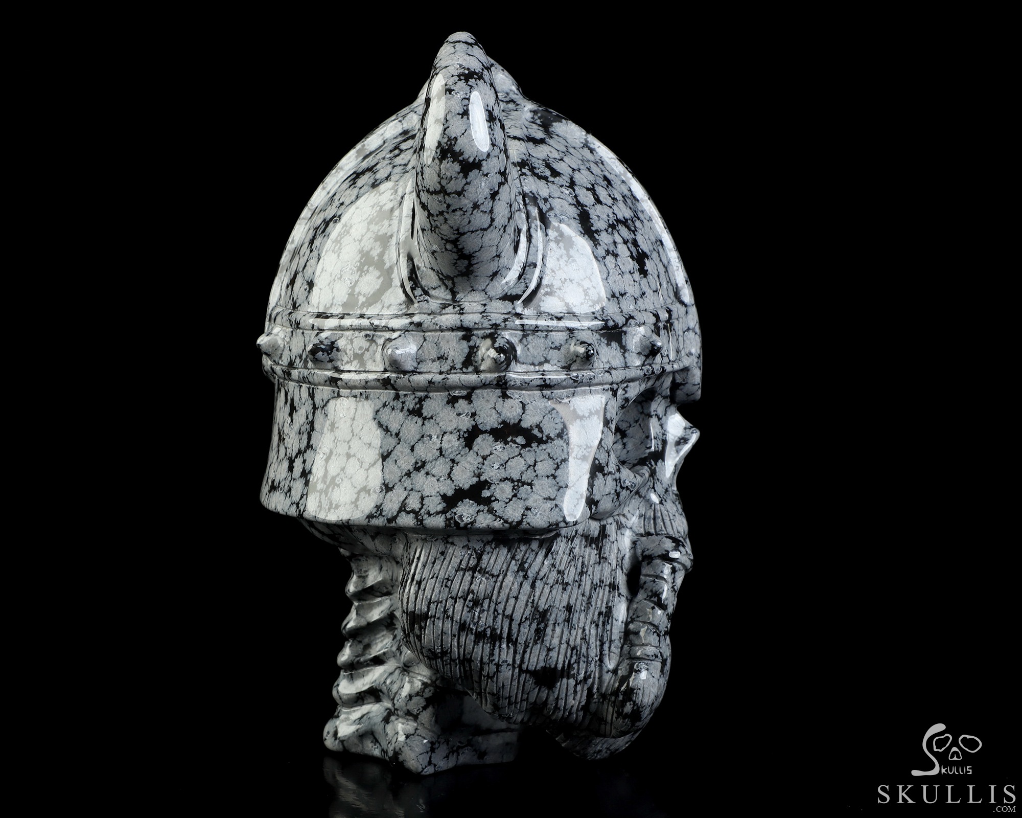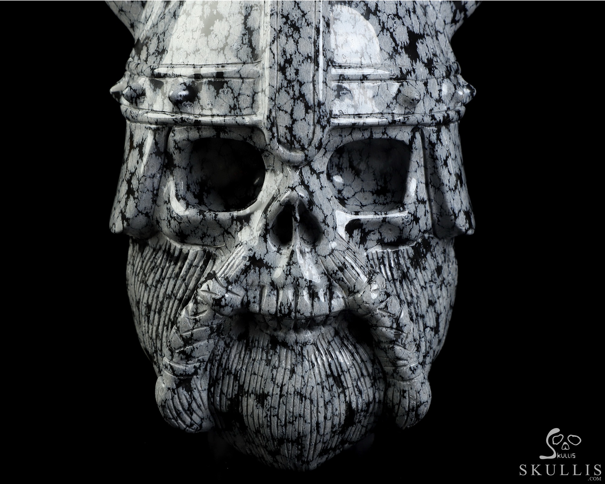 Viking Skull, 6.9" Snowflake Obsidian Hand Carved Crystal Skull Fine Art Sculpture, Crystal Healing