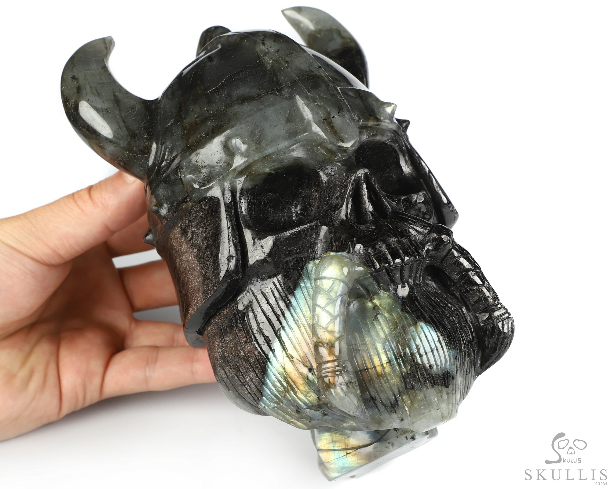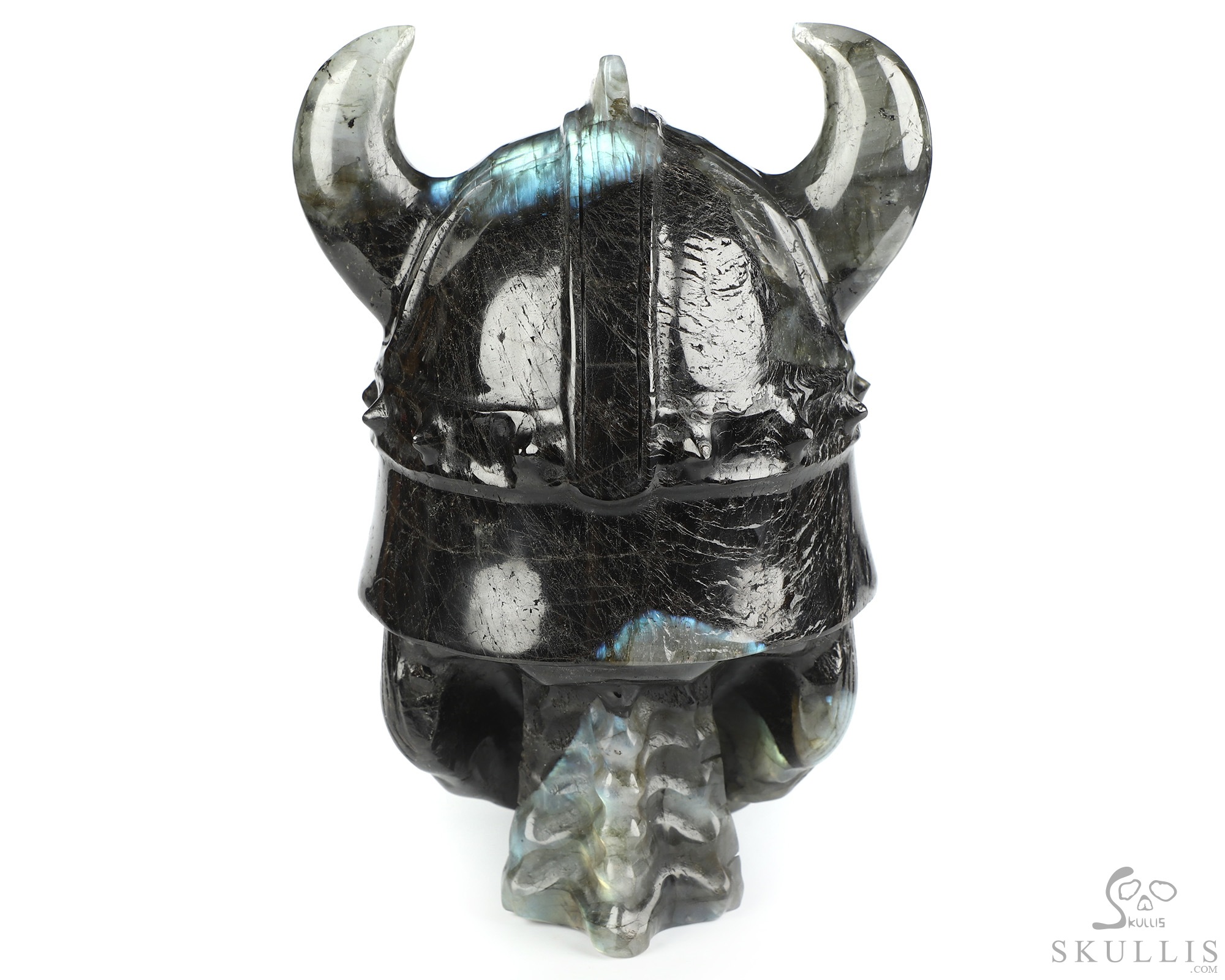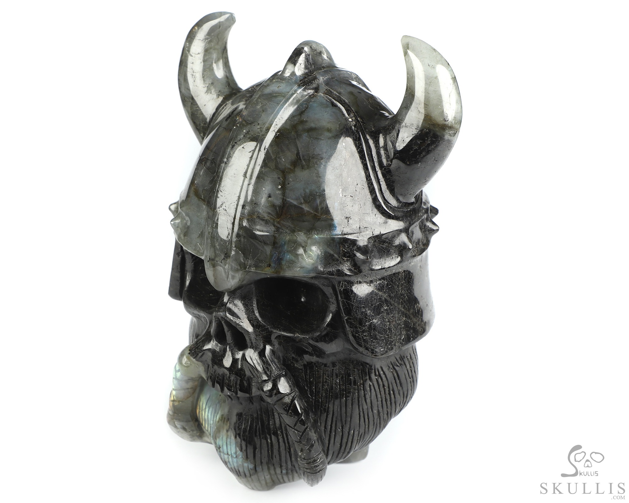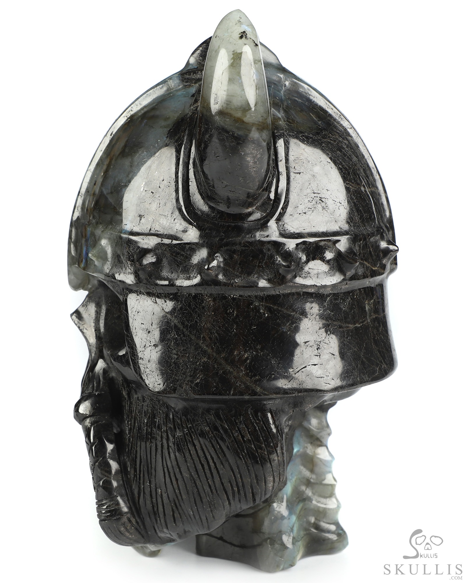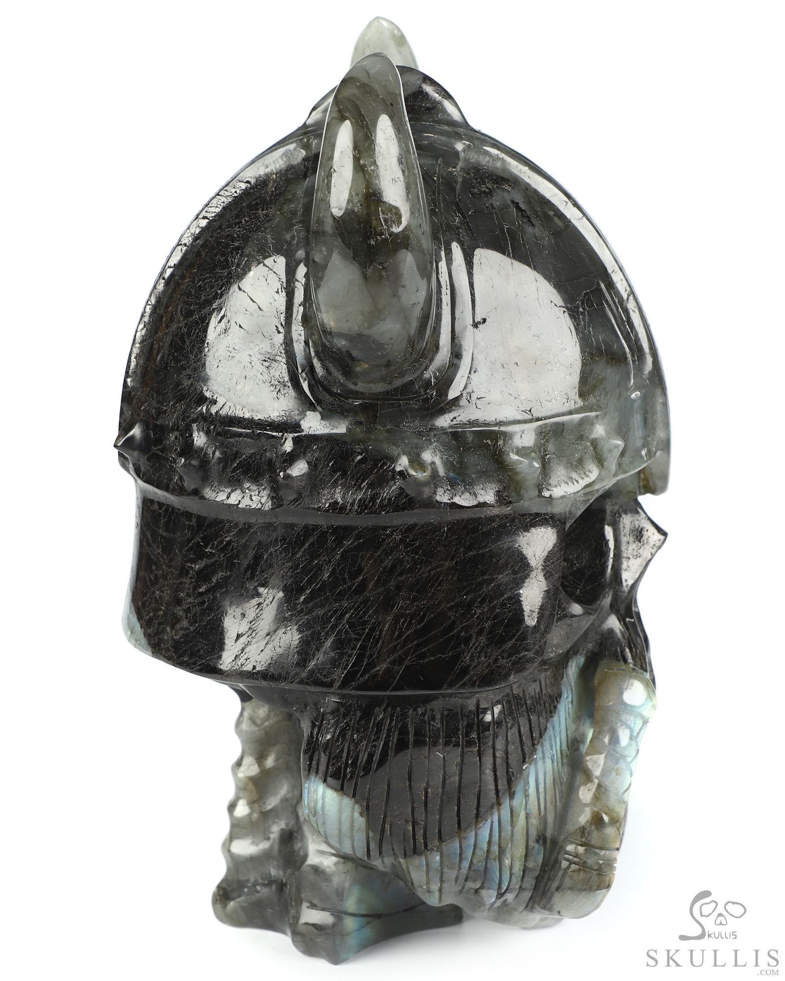 Viking Skull, 7.2" Labradorite Hand Carved Crystal Skull Fine Art Sculpture, Crystal Healing