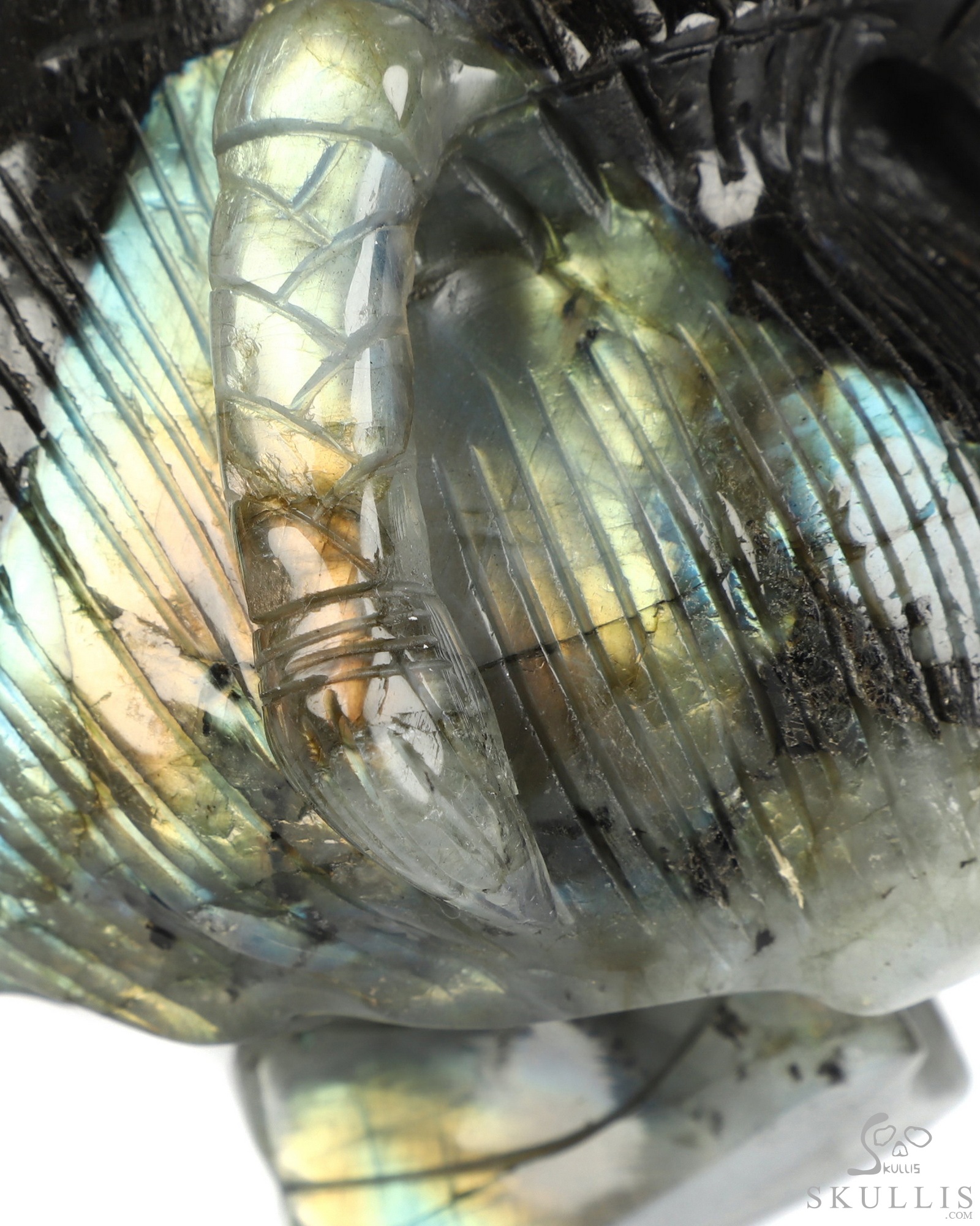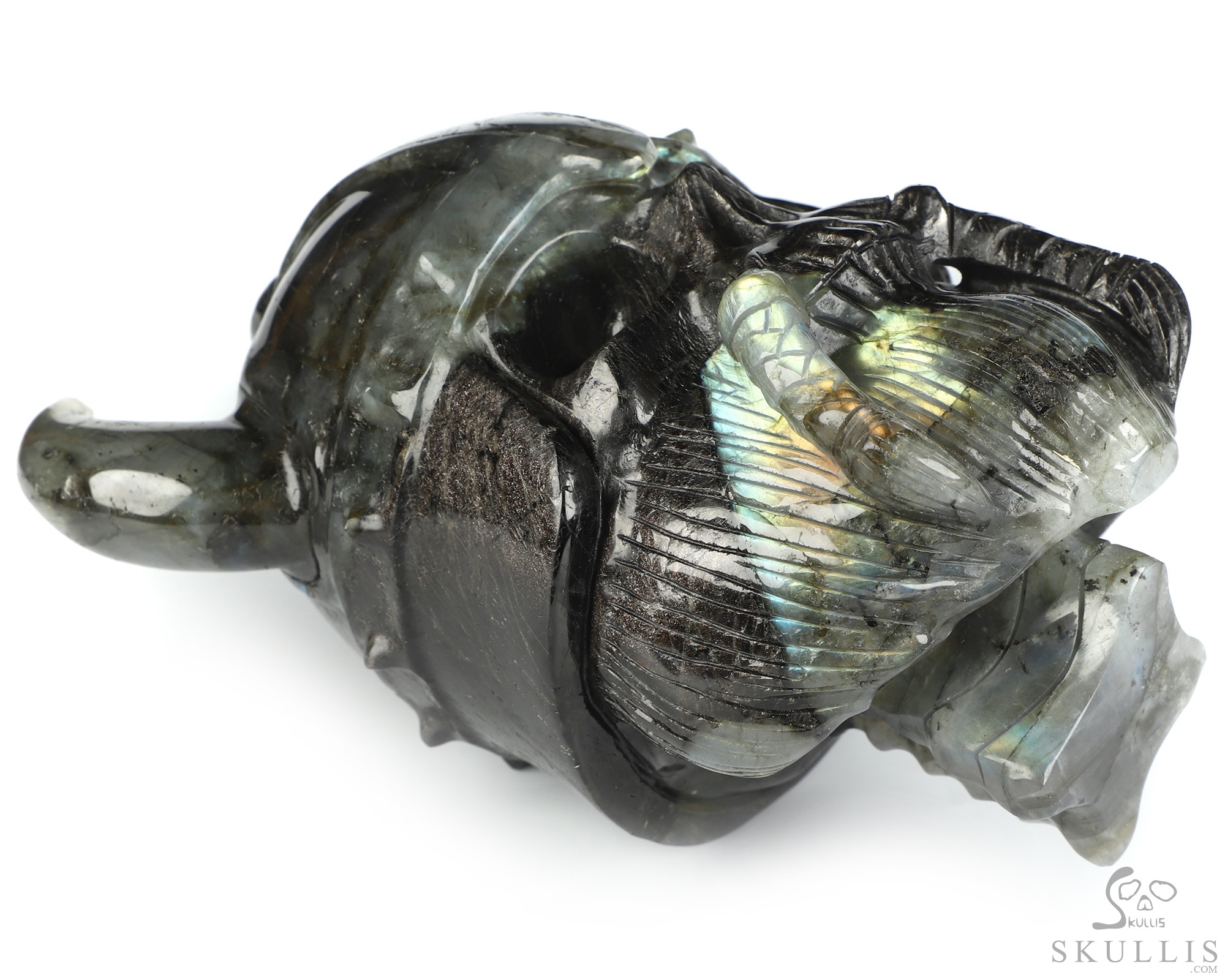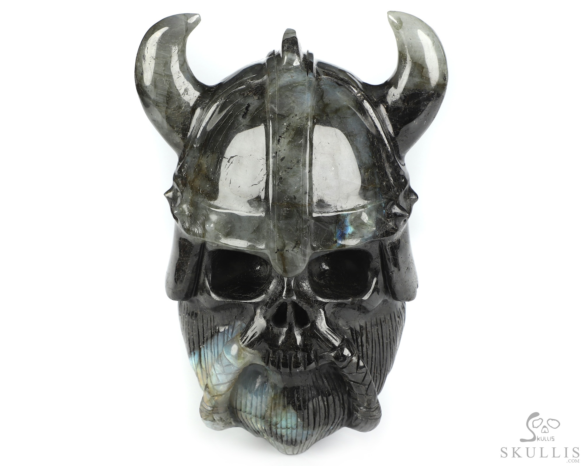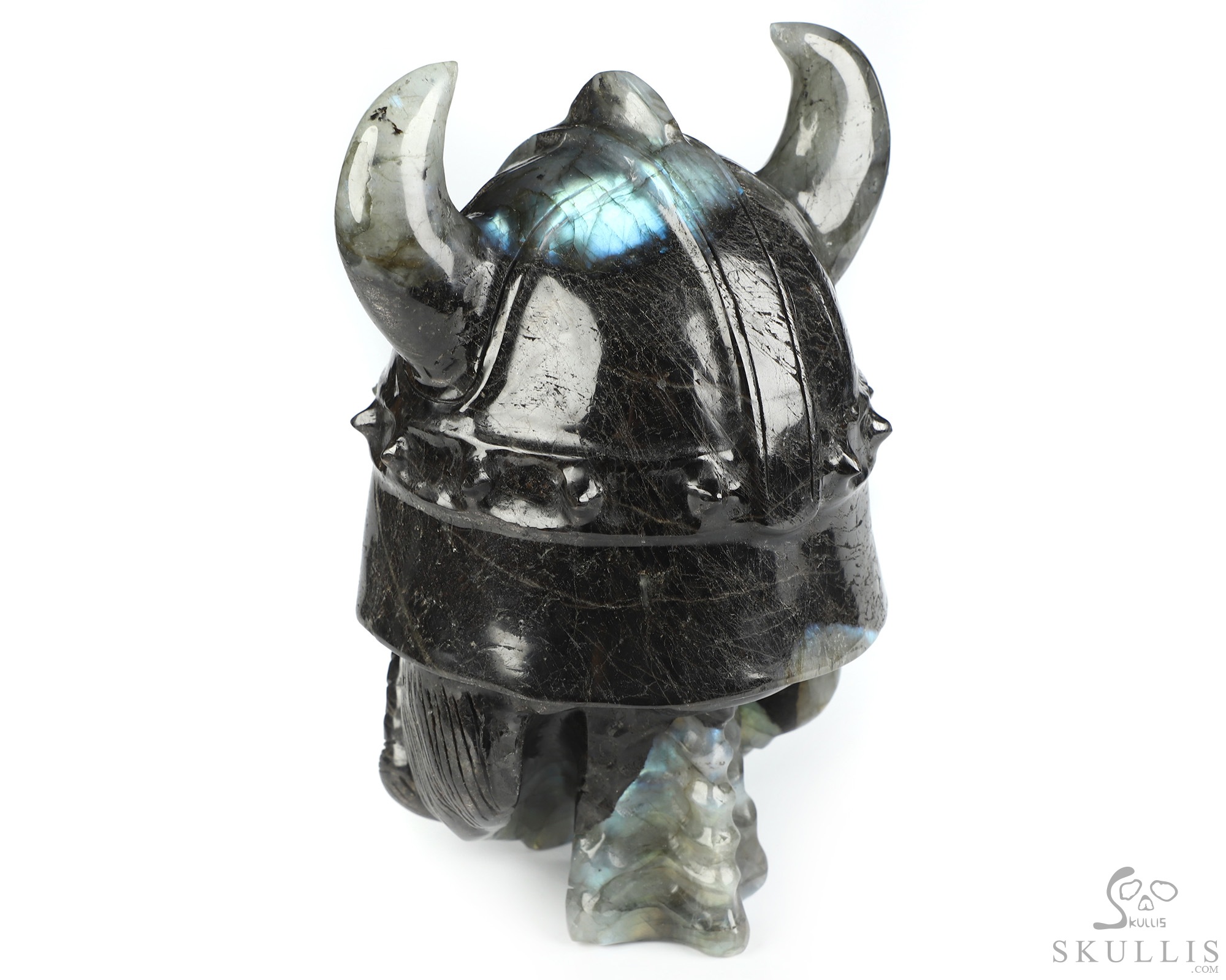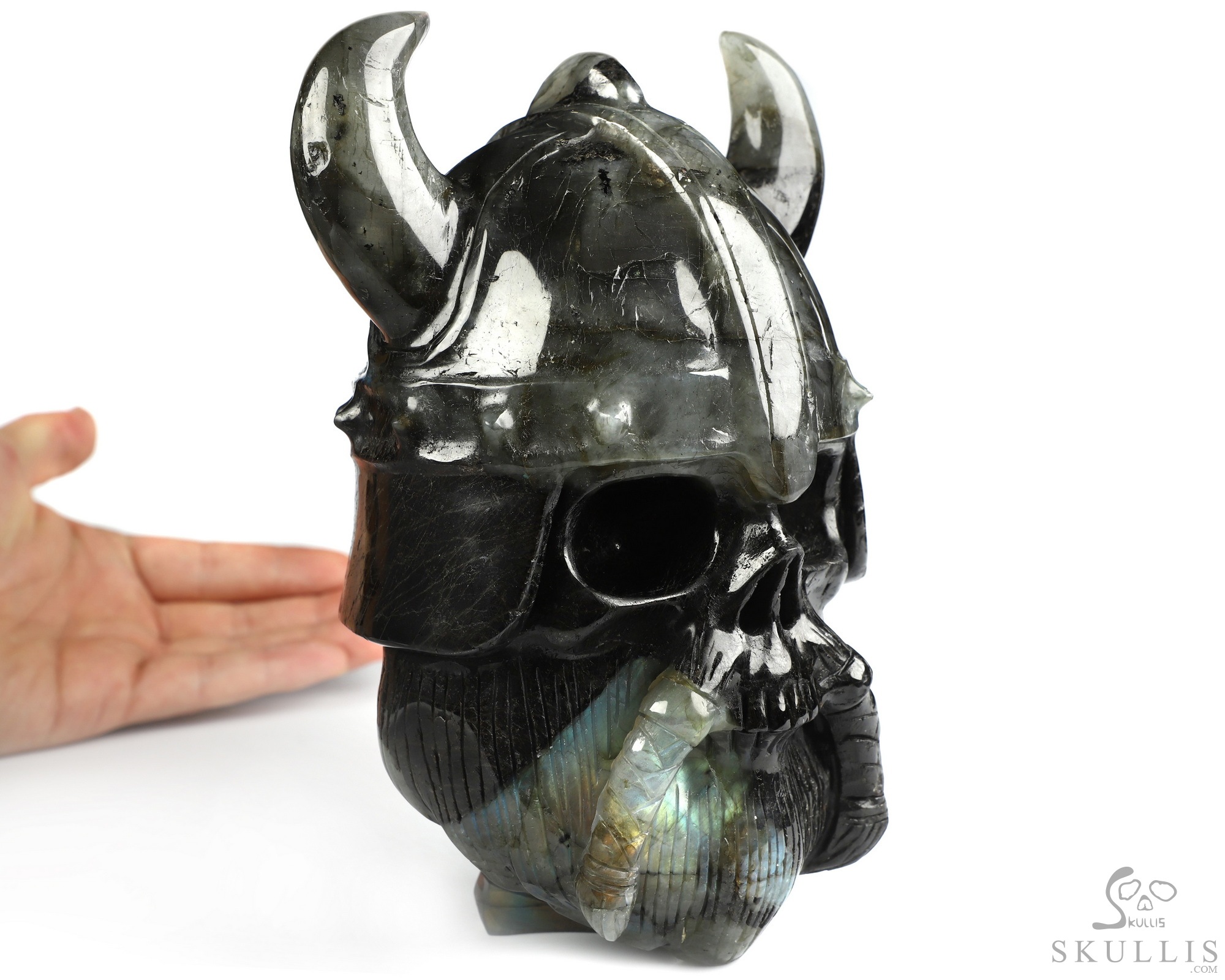Viking Skull, 7.2" Labradorite Hand Carved Crystal Skull Fine Art Sculpture, Crystal Healing