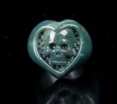 Gemstone Size 9 1/2, Bloodstone Carved Crystal Skull Ring
