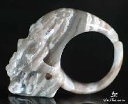 Ammonite Fossil Carved Crystal Skull Ring, size 12
